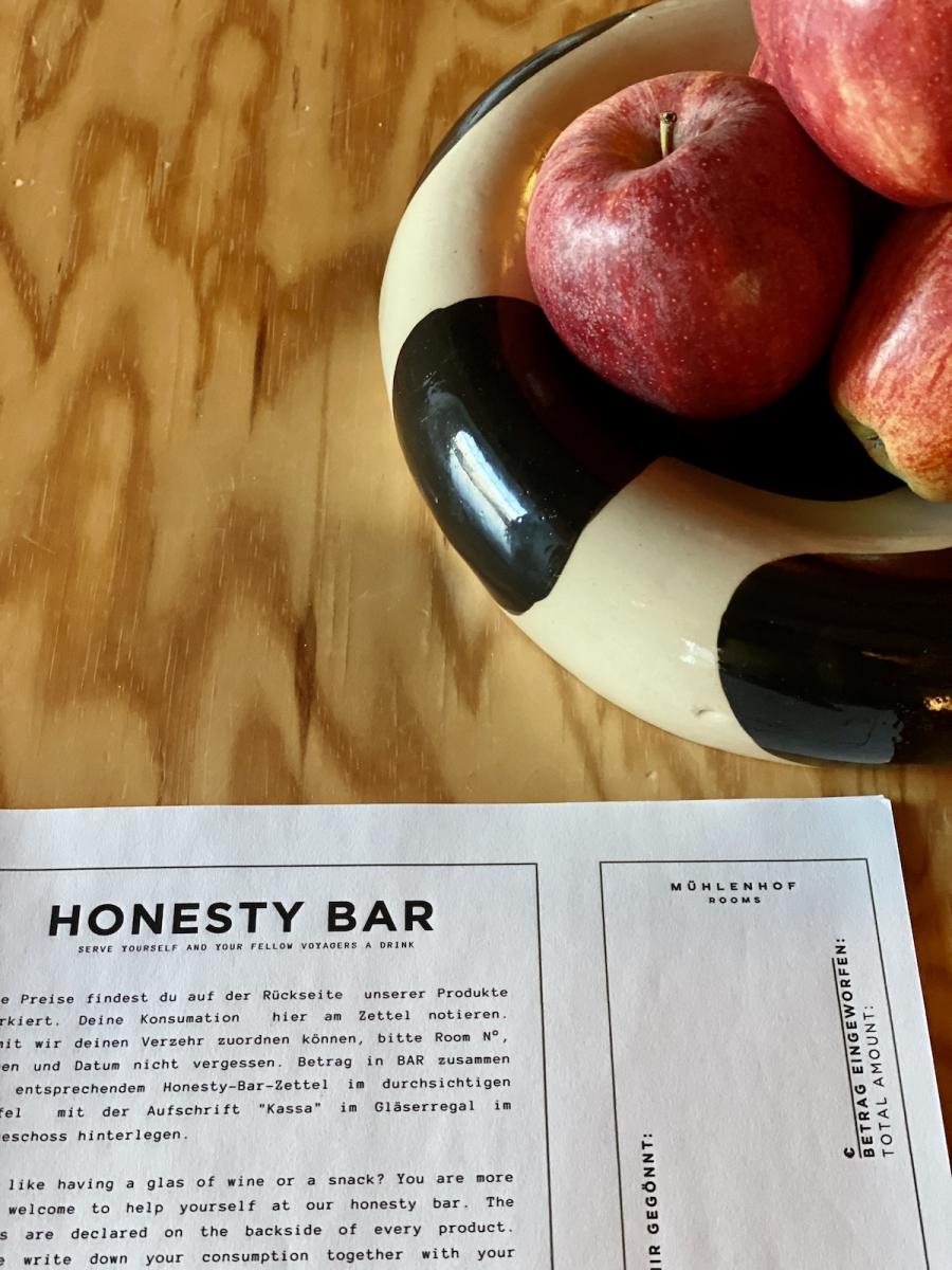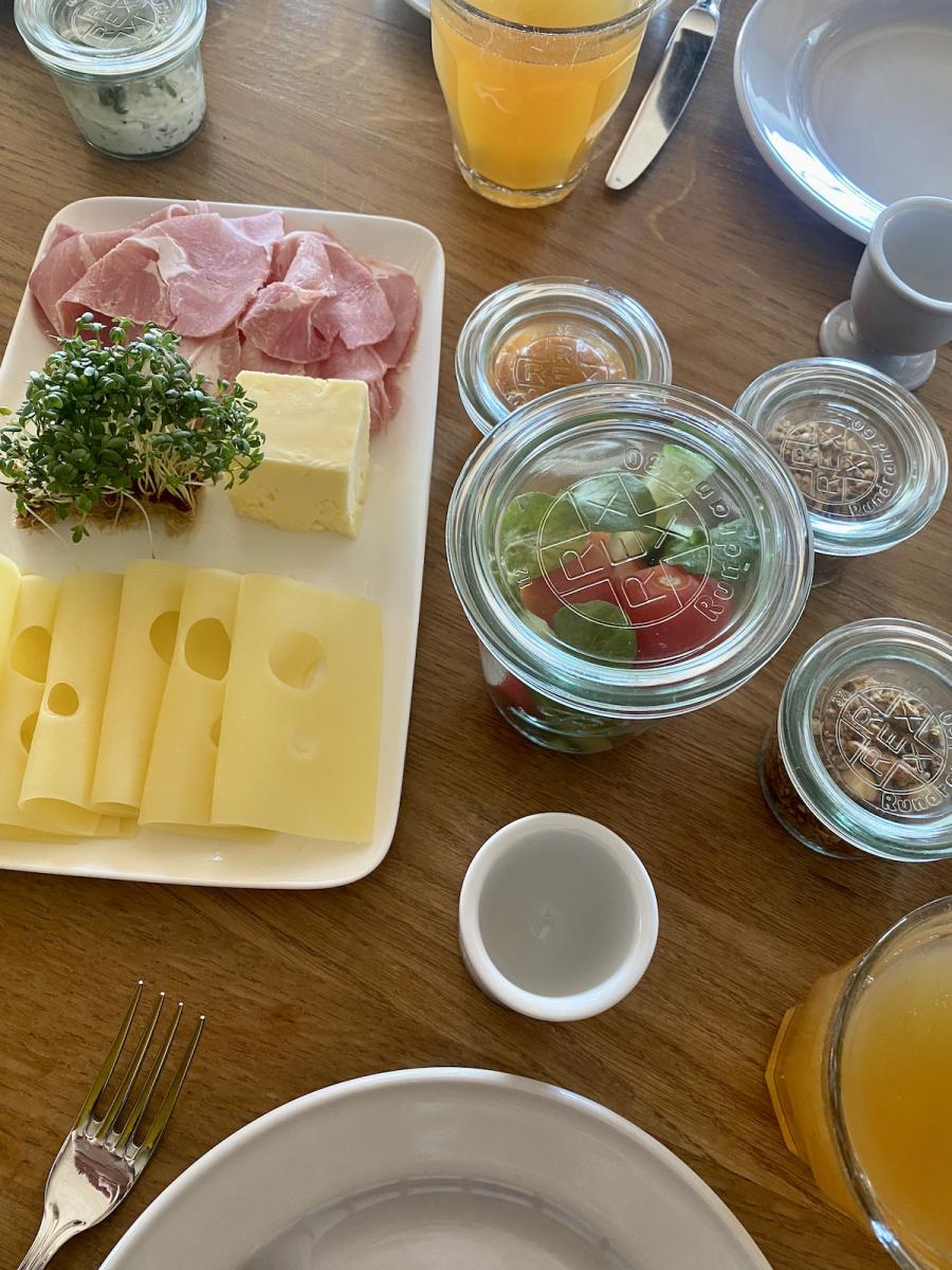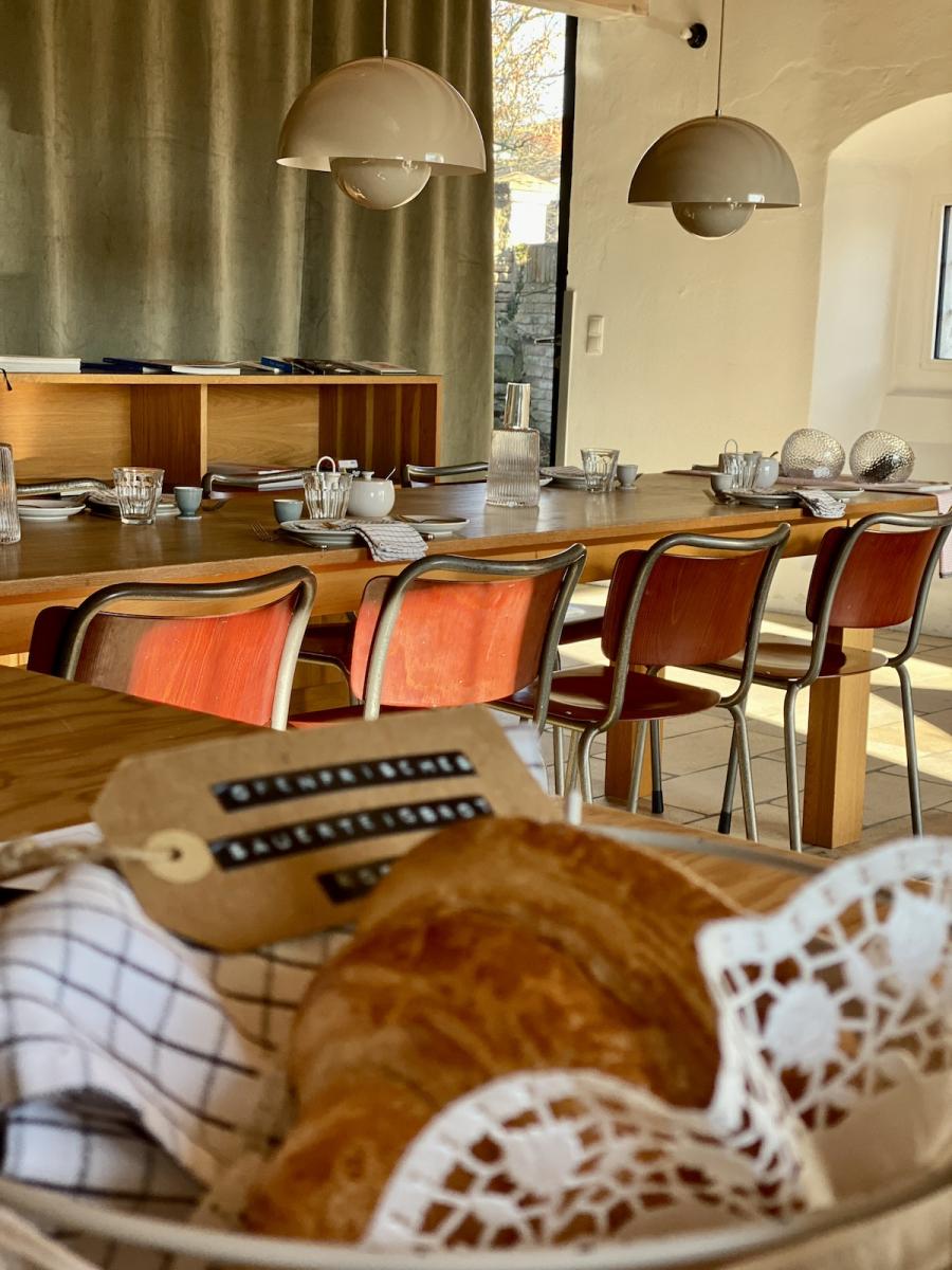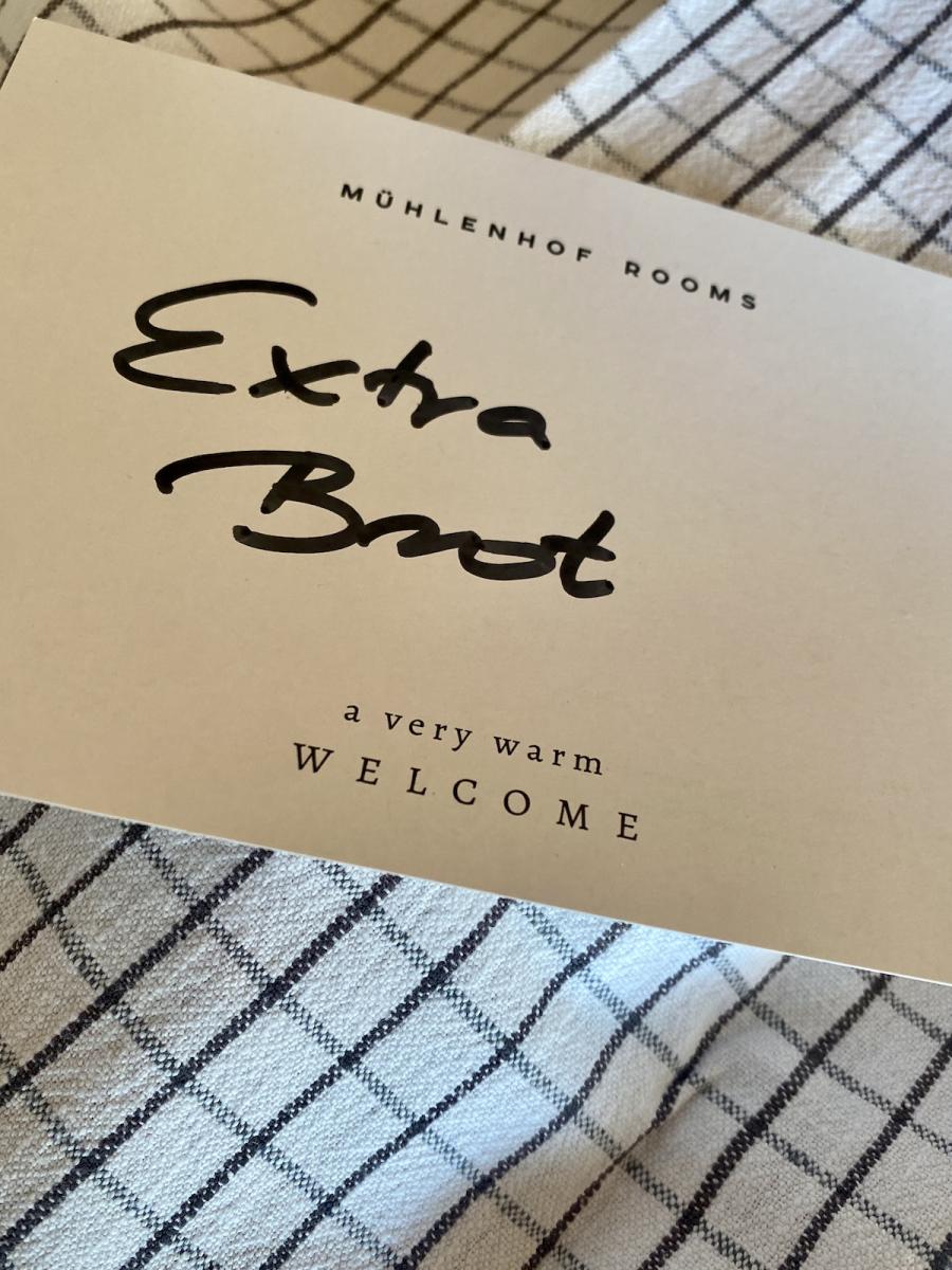 Im Mühlenhof beruht zu Gast sein auf dem Selbstbedienungs-Prinzip: Self-Checkin per PIN, Selfservice beim Frühstück. Aber, spannend: Dennoch hat man das Gefühl, dass die Gastgeber:innen irgendwie trotzdem vor Ort sind. Die netten, persönlichen Begrüßungsworte am Tischchen im Zimmer, das liebevoll vorbereitete Frühstück am schön gedeckten Tisch, das ganze Ambiente. Irgendwie hat man das Gefühl zu Besuch zu sein, in einem Haus bei Freund:innen, die schon auf einen gewartet und alles für einen schönen Aufenthalt vorbereitet haben…
