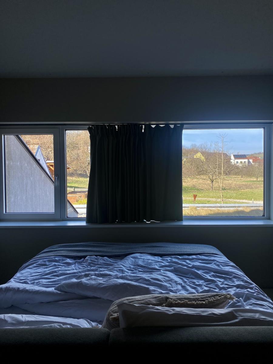 Das (bequeme) Bett ist zum großen, breiten Fenster hin ausgerichtet. Sternderl schauen, erste Reihe fußfrei. Das mag ich – und der dunkle Nachthimmel hängt dann tatsächlich voller Sterne. Und Überraschung, irgendwie hat sich der versprochene Sonnenaufgang-Ausblick dann doch unterbewusst in meinem Gehirn verankert: Nicht ganz pünktlich, aber dennoch gerade noch rechtzeitig genug, um das Ausläufer-Licht des Sonnenaufgangs genießen zu können, wache ich dann am nächsten Tag von selbst auf. Wie schön.