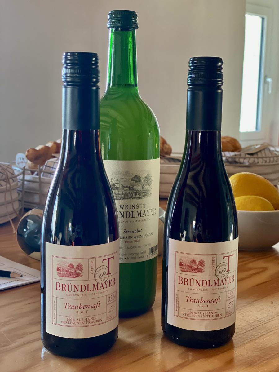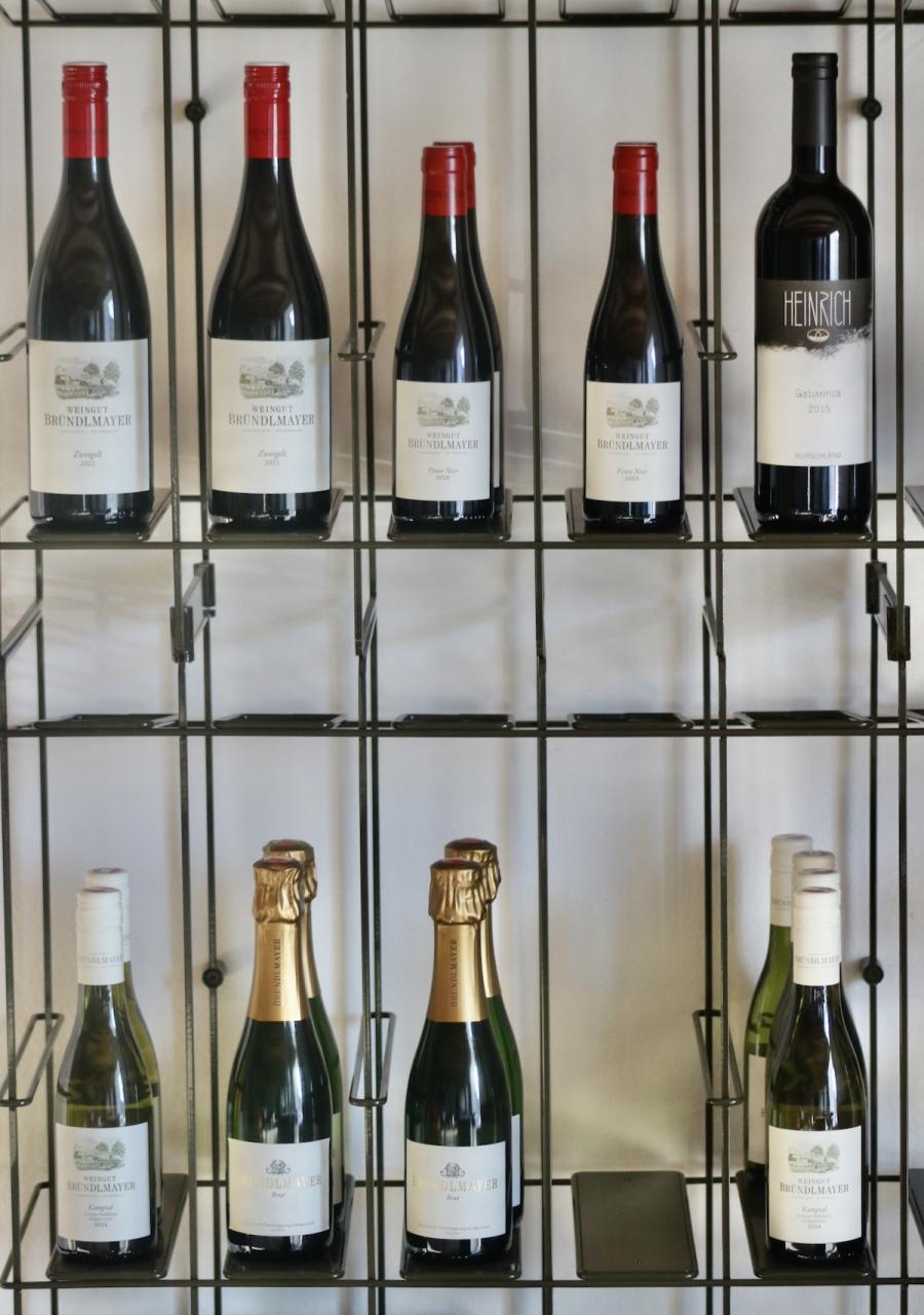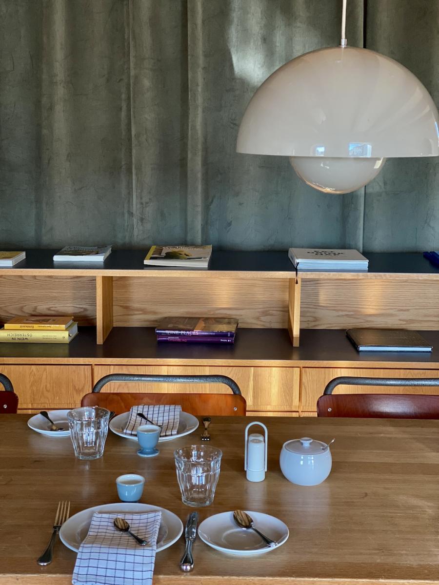 Auch noch gut zu wissen: Das Boutique B&B Mühlenhof Rooms verfügt über 5 Zimmer im Obergeschoss der alten Mühle, angemietet werden kann es auch exklusiv als ganzes, für Freundesgruppen etc. Das Motto „Design meeets wine“ kommt natürlich nicht von ungefähr: Das Kamptal steht für hervorragende Weine – und die kann man auch im Mühlenhof Rooms genießen. Einfach in der honesty bar selbst bedienen und bei einem Glas Wein den Studio Space im Erdgeschoss, das eigene Zimmer oder im Sommer den Garten genießen. Passend dazu findet man in der Küche auch salzige oder süße kleine Snacks. Bezahlung? Easy – einfach die entsprechende Geldsumme in die Geld-Box werfen, zusammen mit dem Zettel mit Namen, Zimmernummer und Liste der gekauften Getränke und Snacks. Was man in der Gegend alles unternehmen kann, dazu gibt´s in jedem Zimmer einen kompakten, aber wirklich gut zusammengefassten kleinen Guide mit vielen Empfehlungn – und hoffentlich hier am Blog auch bald mal einen Beitrag mit meinen Top-10-Lieblingsplätzen im Kamptal. Noch ein kulinarischer Tipp zum Schluss: Einen Besuch wert ist der ebenfalls von Victoria und ihrem Mann Martin betriebene Heurigenhof Bründlmayer in Langenlois; vom Picknick im Weingarten über Weinverkostung mit feiner Jause bis hin zu Fine Dining im Restaurant, hier weiß man ganz genau, wie das Kamptal schmeckt...