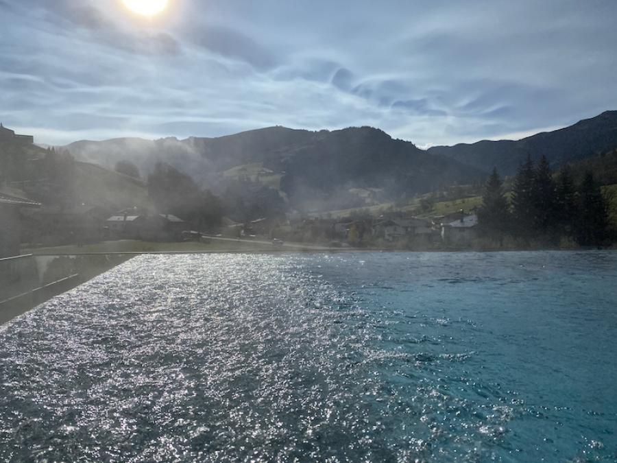 Irgendwie bin ich immer ein wenig verwirrt, wenn ich aus dem Hotelzimmer blicke: Wo ist bitte der Schnee? Ach ja, es ist Ende Oktober und damit Herbst. Bisher war ich immer nur im Winter in Maria Alm – von Kindheit an, kein Wunder also, dass ich diesen Ort vorwiegend mit winterweißer Landschaft vor dem Fenster verbinde. Dies ist also eine Premiere: Im Herbst ein Kurzbesuch in Maria Alm. Der aber lohnt: Denn wenn ich am Balkon stehe und zu den umliegenden Bergen schaue, dann sehe ich wunderbar herbstlich bunt gefärbte Bäume, immer noch glücklich grasende Kühe und blauen Himmel. Maria Alm will mir zeigen, wie schön es hier im Herbst ist. Und so mache ich das, was ich schon früher tun hätte sollen: Wandern! Und zwar dort, wo ich sonst mit den Skiern unterwegs bin. Das Nationalfeiertagswetter rund um den 26. Oktober meint es ausgesprochen gut mit uns: Am Weg zu den Gipfelkreuzen kommen wir schon mal ins Schwitzen und so ein Sonnenbad da oben, an die Hüttenwand angelehnt, tut auch Ende Oktober gut. Meine strapazierten Beinmuskeln versöhne ich dann abends im SEPP Rooftop-Pool. Über mir die Sternderln, kann eigentlich nicht schöner sein. Abends dann ein asiatische 4-Gänge-Menü im SEPP Restaurant, mhm. Übrigens: Dank vorbildlicher Umsetzung der aufgrund der COVID-Krise vorgegebenen Maßnahmen – im Restaurant wie im ganzen Haus – fühlen wir uns auch in diesen Zeiten bestens aufgehoben im SEPP. Aber eigentlich haben wir uns auch nichts anderes erwartet…