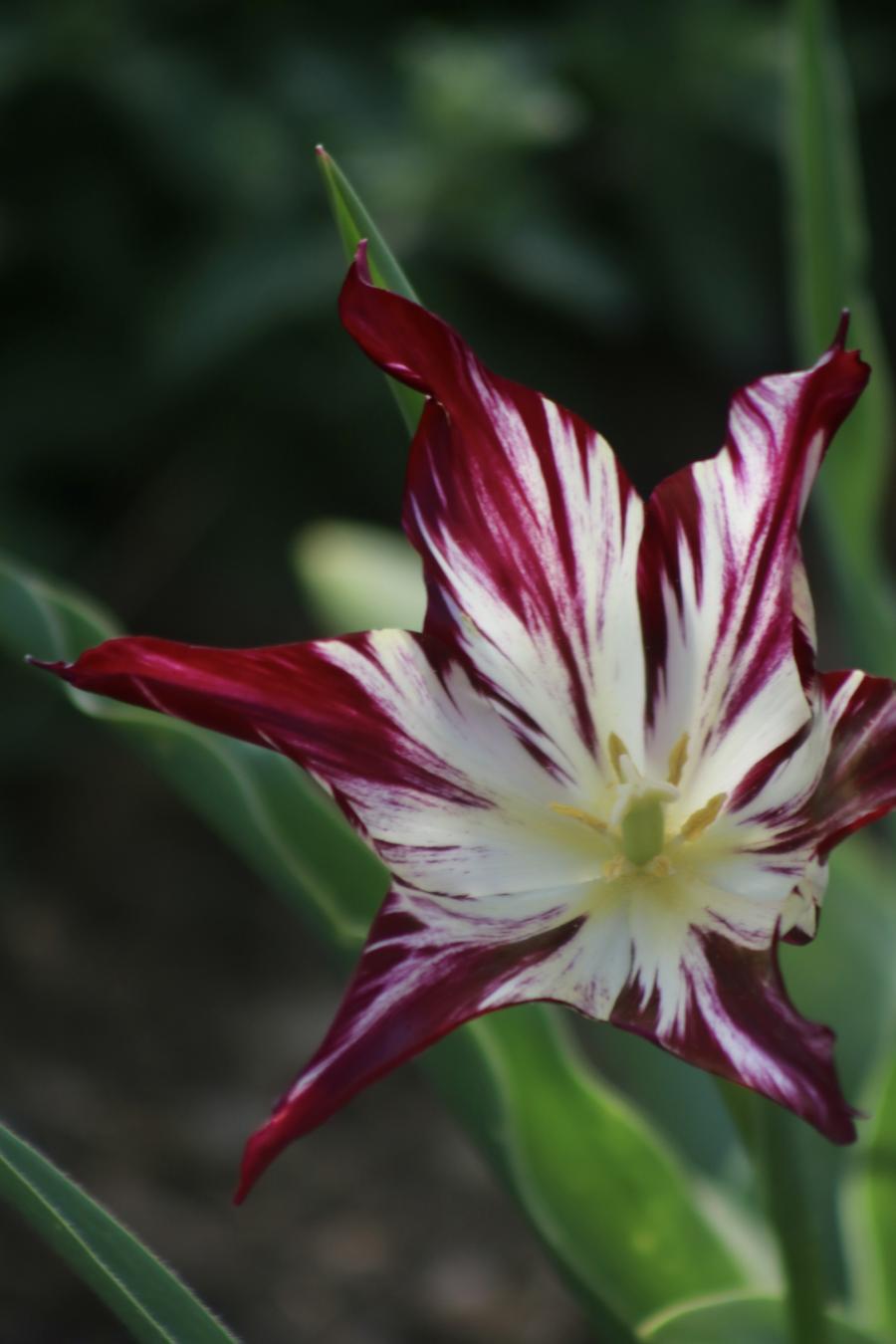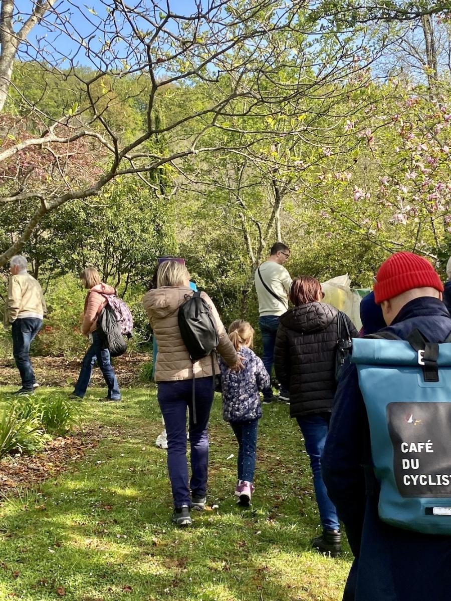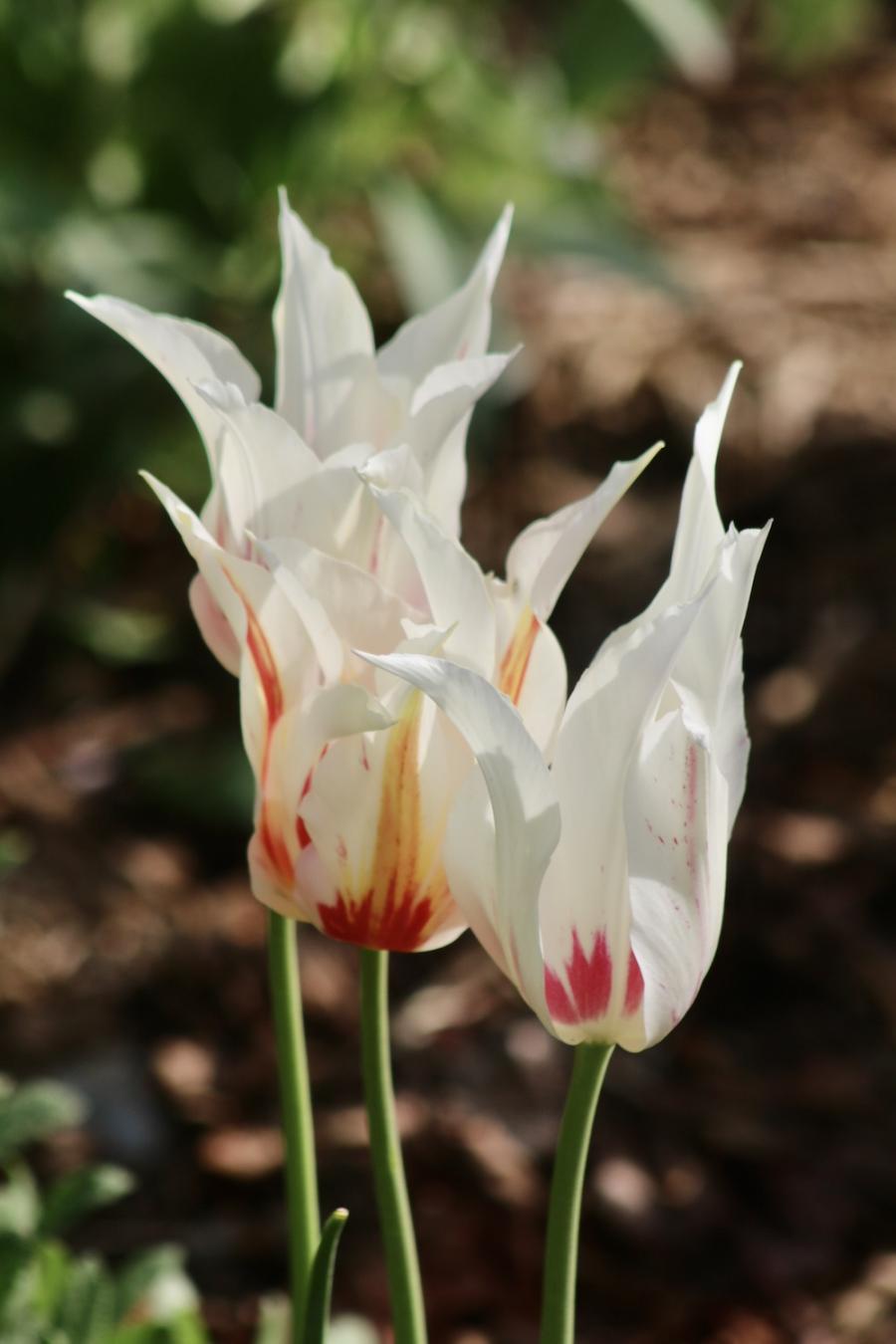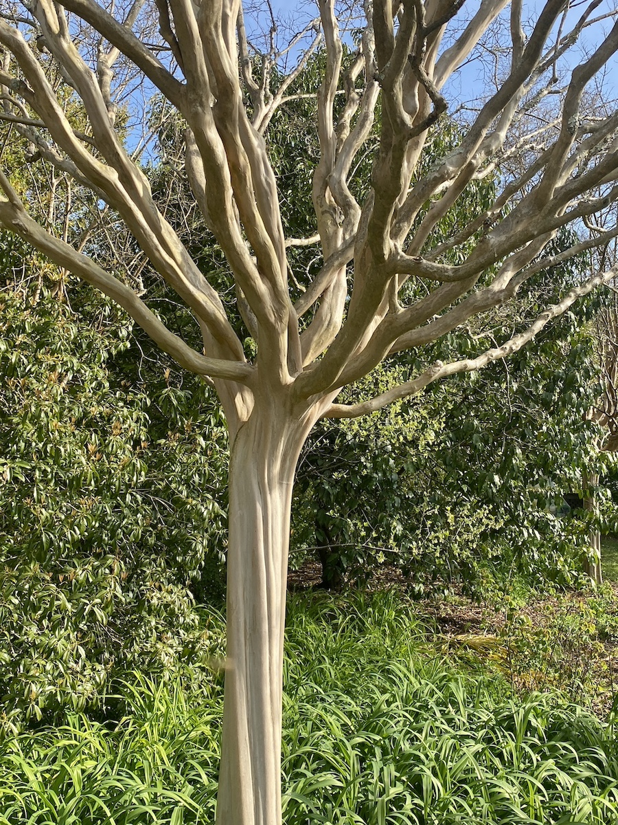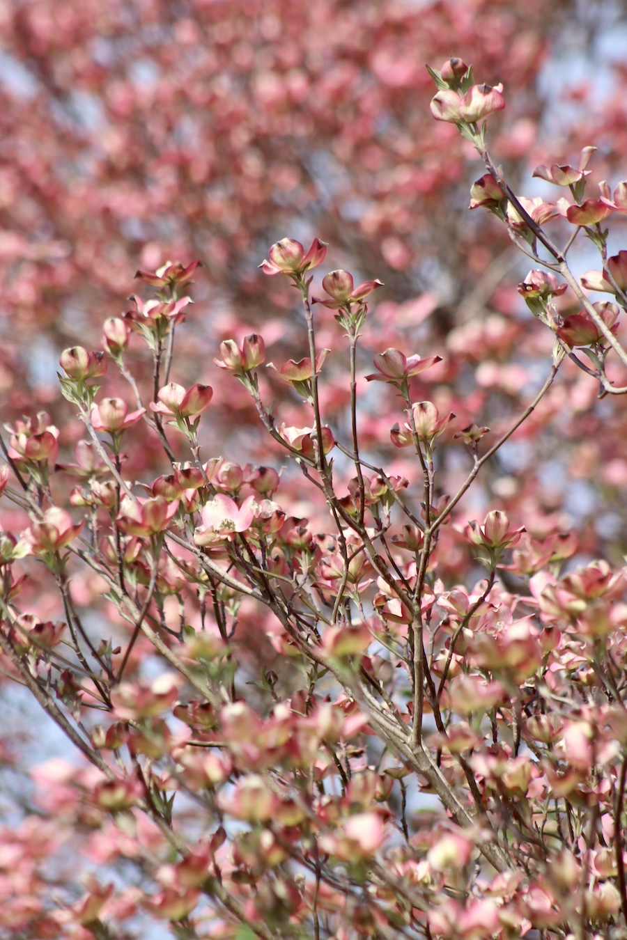 Wir starten unseren geführten Rundgang auf der obersten Ebene, wo auch das Haus steht, das Viatori damals errichtete, und in dem sich heute ein kleines Informationszentrum befindet, indem auch auf dem digitalen Weg viel über den Garten, aber auch das gesamte umliegende Gebiet und Naturschutzthemen erfahren kann. Was mir rund um das Haus gleich auffällt: Die Tulpen sind zum Großteil bereits am Verblühen, zu Hause in Wien sind sie zu diesem Zeitpunkt, Anfang April, noch nicht einmal ansatzweise erblüht. Wir hören, dass im Laufe der Jahre rund 500 Azaleenarten angepflanzt wurden, und das, obwohl der hiesige Boden dafür nicht geeignet ist. Nachgeholfen wurde daher in den Azaleenbeeten mit Sägespänen, die man sich in Sägewerken in der Umgebung besorgt hat, und mit Kompostmaterial – die Azaleen scheint es jedenfalls überzeugt zu haben. Denn sie wuchern geradezu und leuchten in den unglaublichsten Farben. Viatori experimentierte mit Böden, Mikroklima und Gestaltung und erschuf so seine eigene botanische Welt. In welcher z. B. auch der Albero di San Bartolomeo Platz gefunden: Noch steht die chinesische Kräuselmyrthe mit nackt anmutenden, glatten, zimtfarbenen Stämmen da. Ihre Rinde löst sich über den Herbst von selbst ab, spätestens im Juli wird sie in Pink, Rot, Weiß oder Violett blühen. Was mich ebenfalls begeistert: Der Nuttalls Blüten-Hartriegel, mit wunderschönen weißen Blüten, die schon fast wächsern-artifiziell aussehen – ein Baum, den ich hier zum ersten Mal in meinem Leben sehe. Was für eine unglaublich schöne Pflanze!