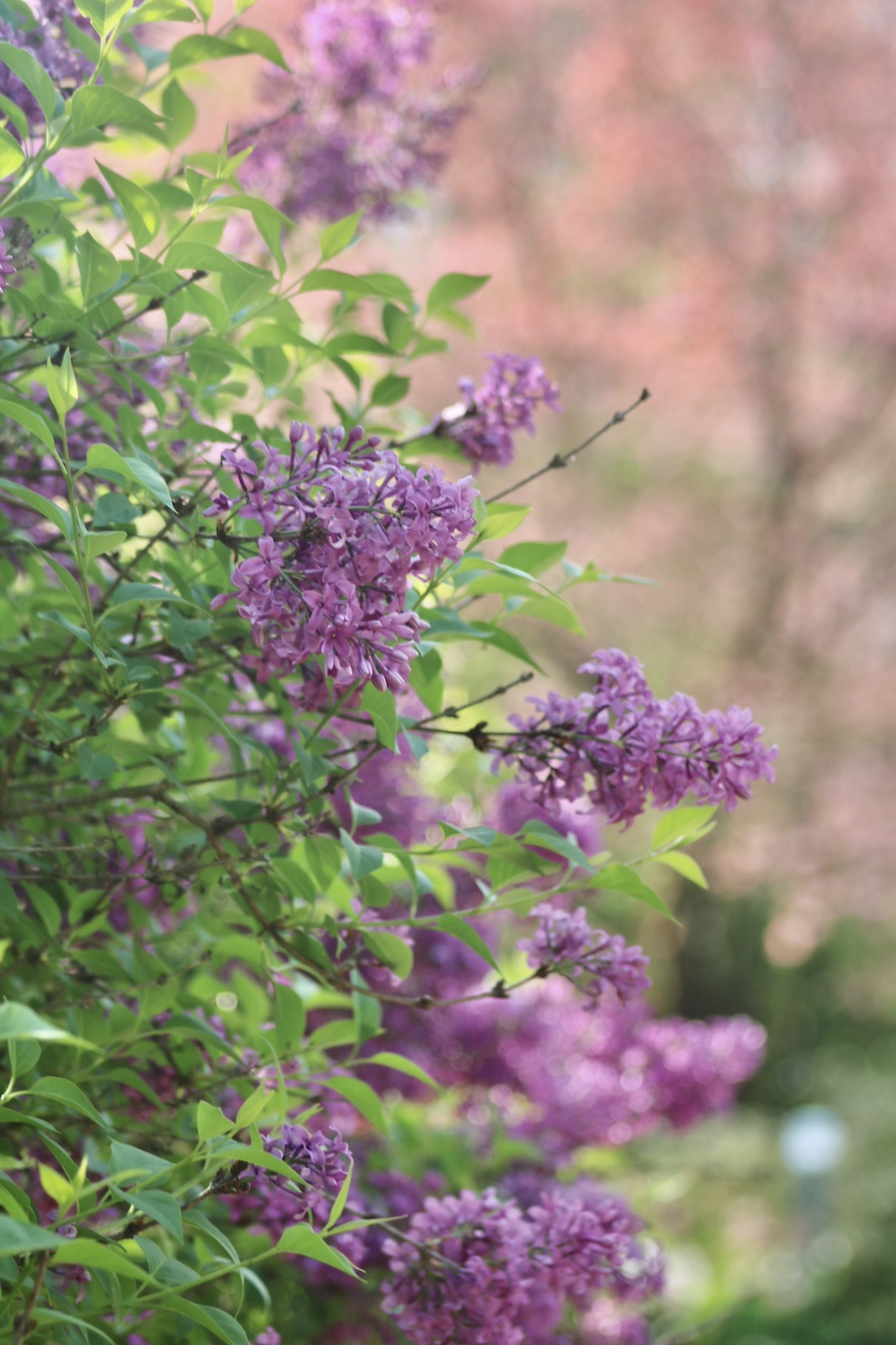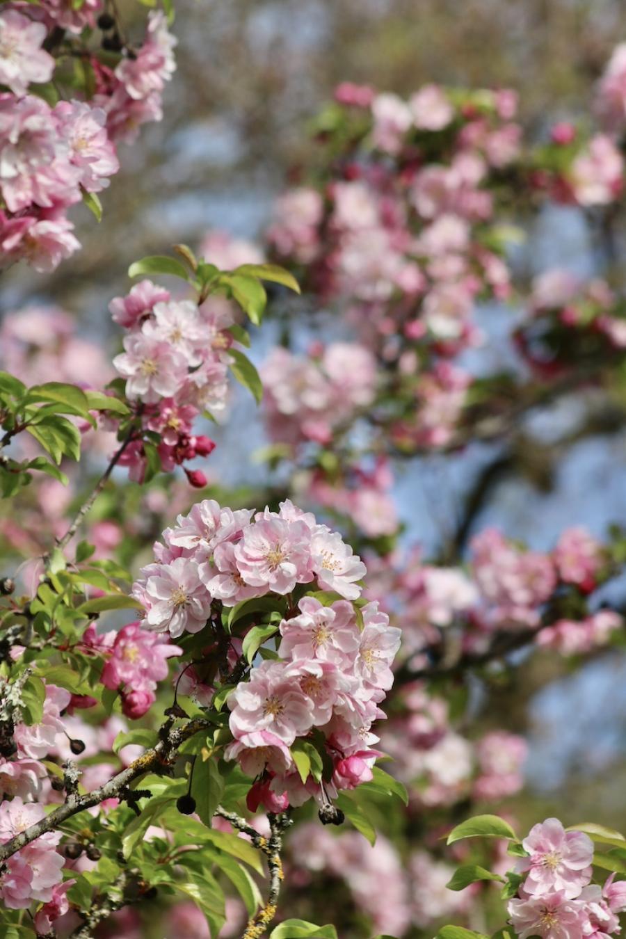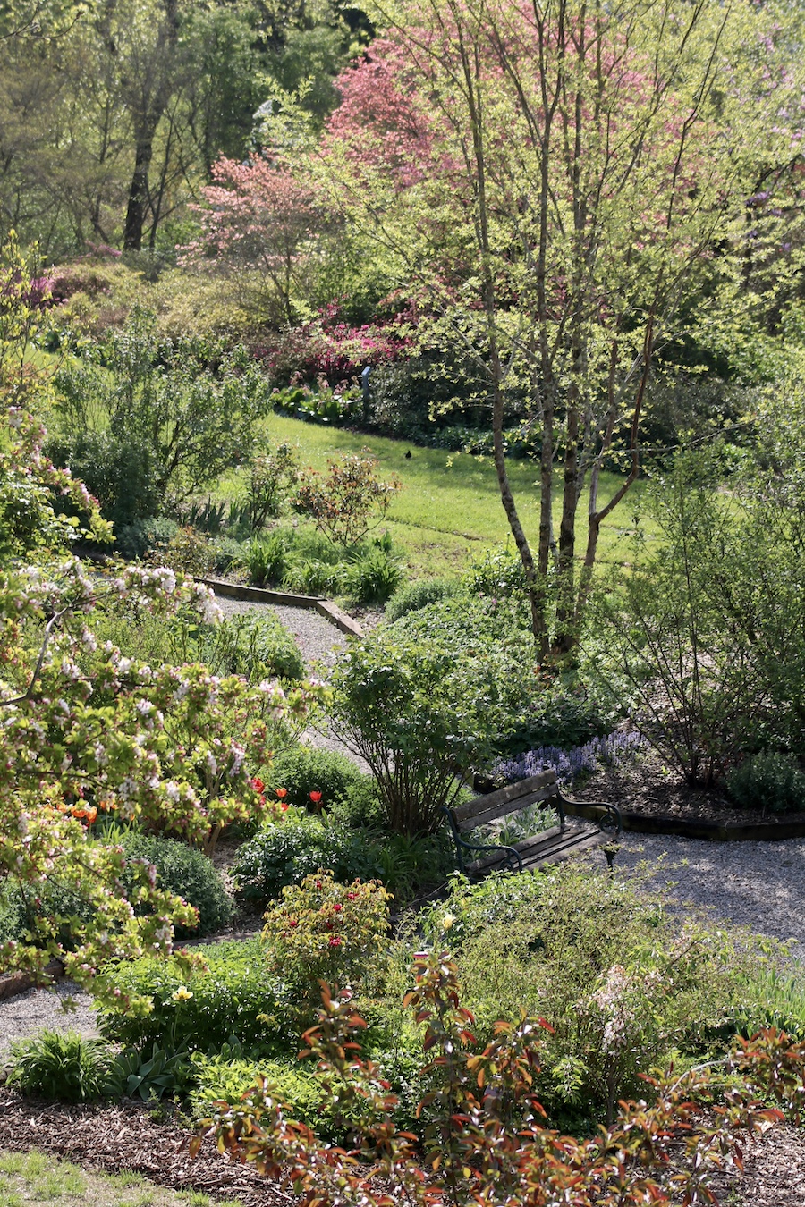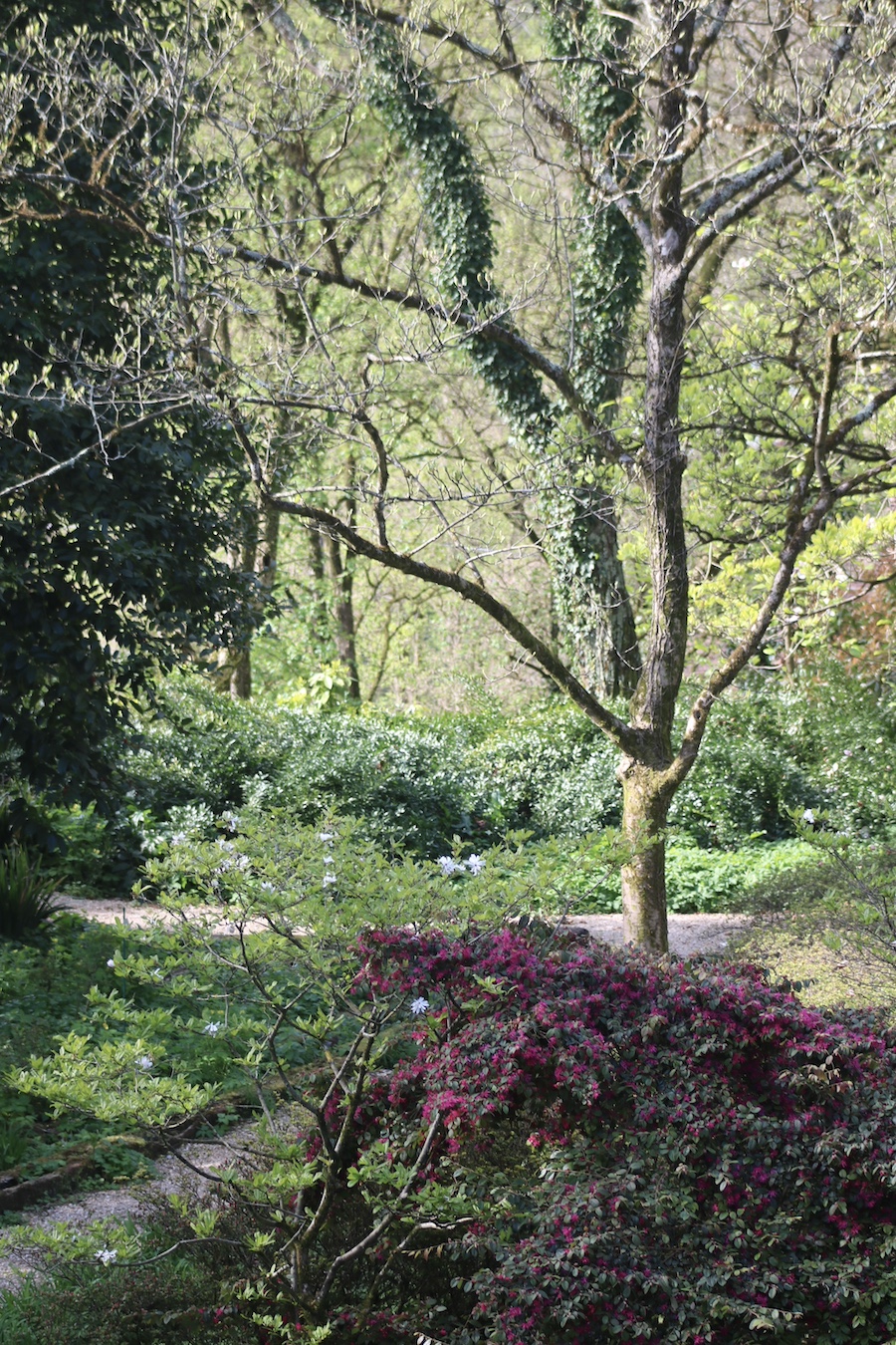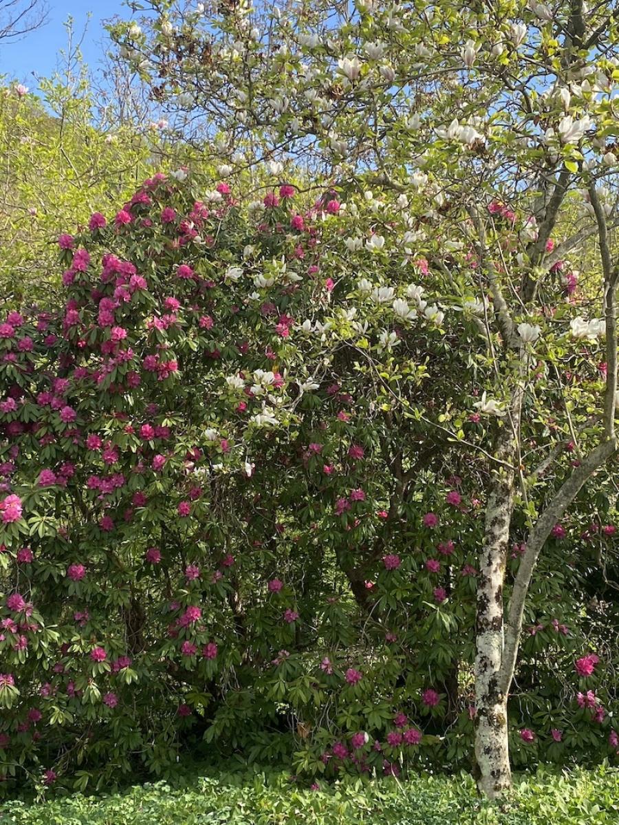 Besonders schön ist der Garten jetzt im Frühjahr, Anfang April. Die Pflanzen- und Blumensammlungen bestechen mit einem Farbspektrum zwischen zarten Pastelltönen und überbordend intensiven Pink- und Violettnuancen. Bienen summen, erste Schmetterlinge eilen von Blüte zu Blüte, und ja, mag es klischeehaft klingen, aber irgendwie scheint Zeit hier plötzlich keine Rolle zu spielen. Und ich, ich hätte hier noch gerne mehr Zeit...