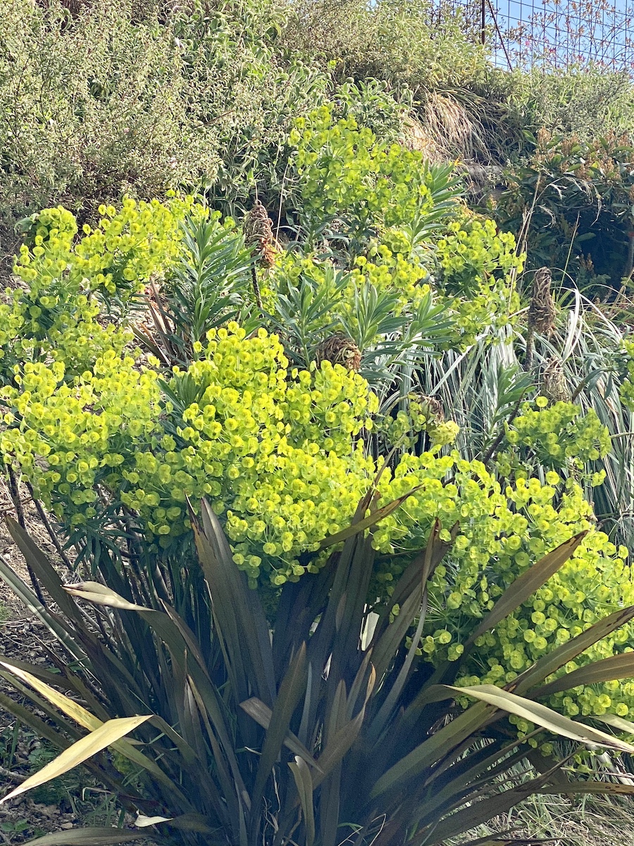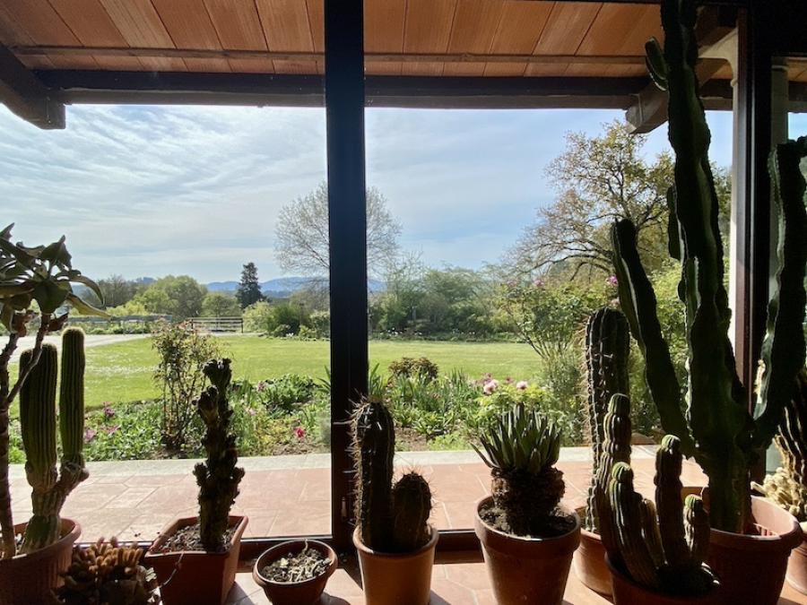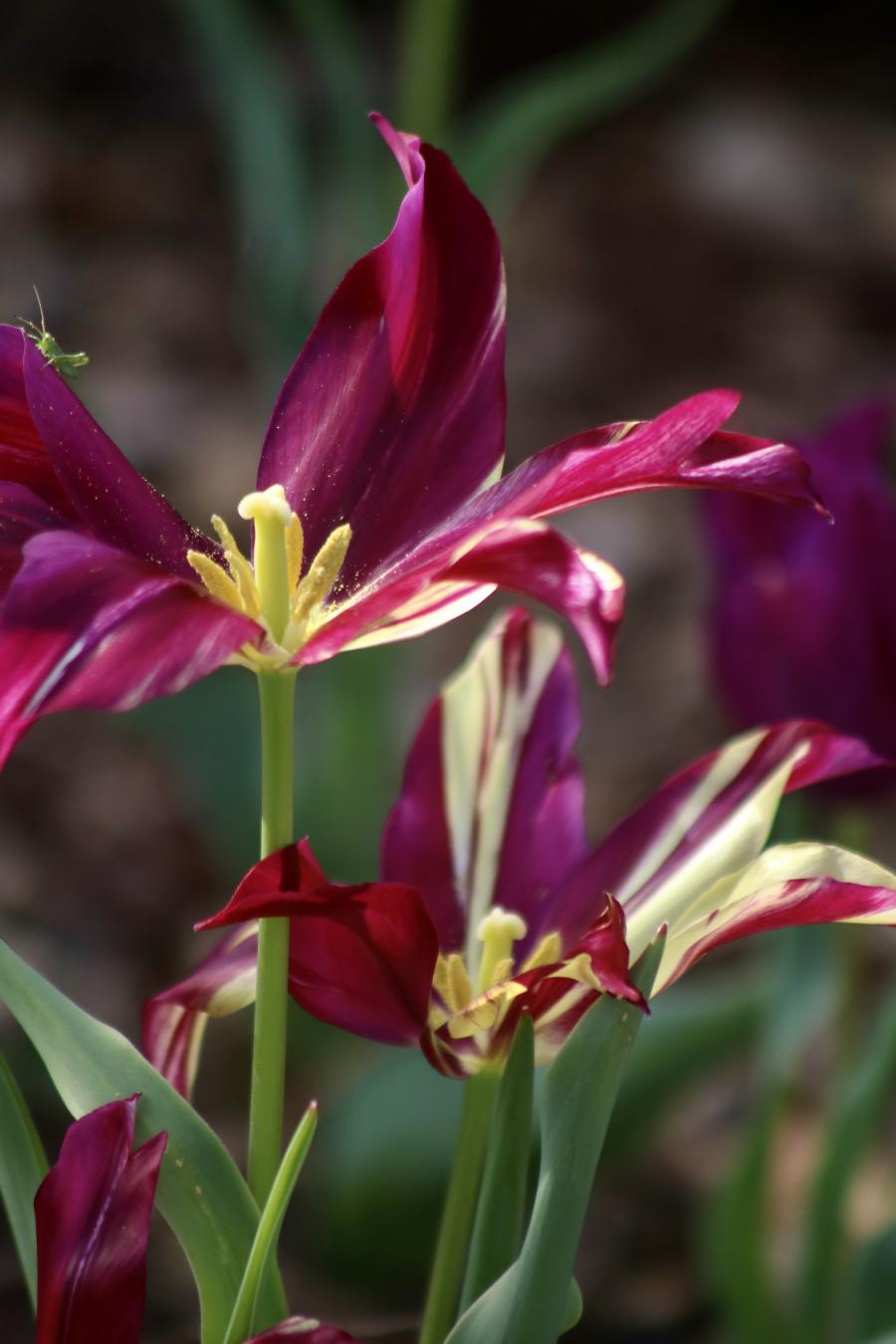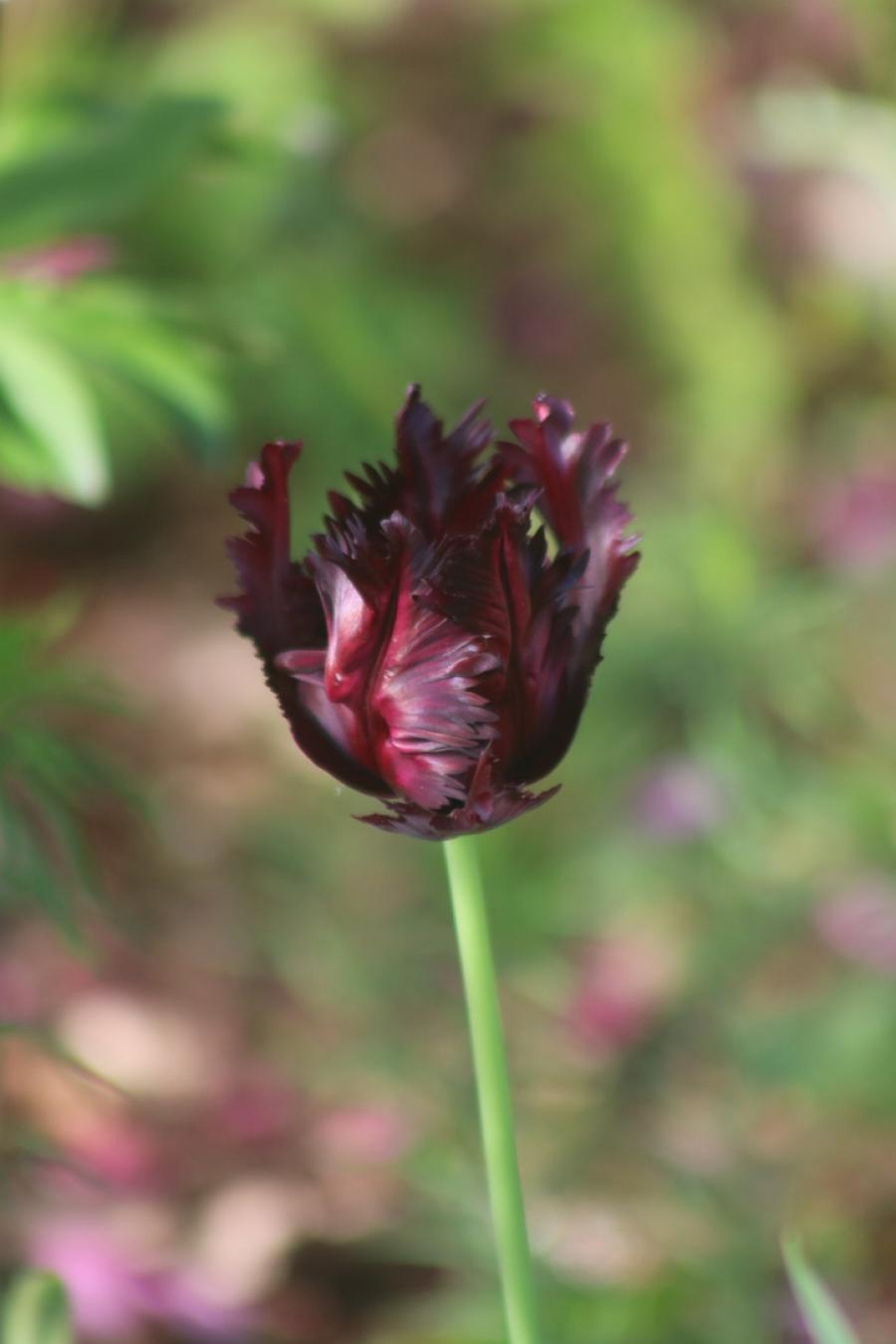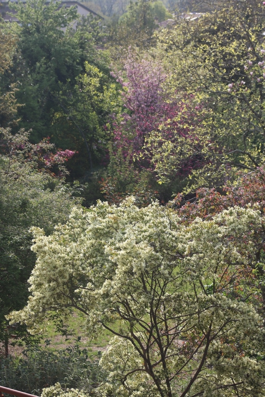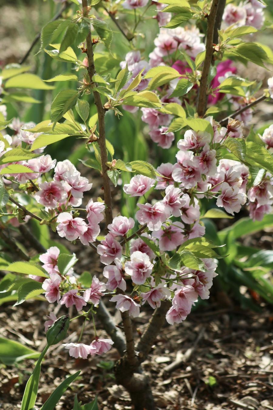 Besonders schön ist der Garten jetzt im Frühjahr, Anfang April. Die Pflanzen- und Blumensammlungen bestechen mit einem Farbspektrum zwischen zarten Pastelltönen und überbordend intensiven Pink- und Violettnuancen. Bienen summen, erste Schmetterlinge eilen von Blüte zu Blüte, und ja, mag es klischeehaft klingen, aber irgendwie scheint Zeit hier plötzlich keine Rolle zu spielen. Und ich, ich hätte hier noch gerne mehr Zeit...