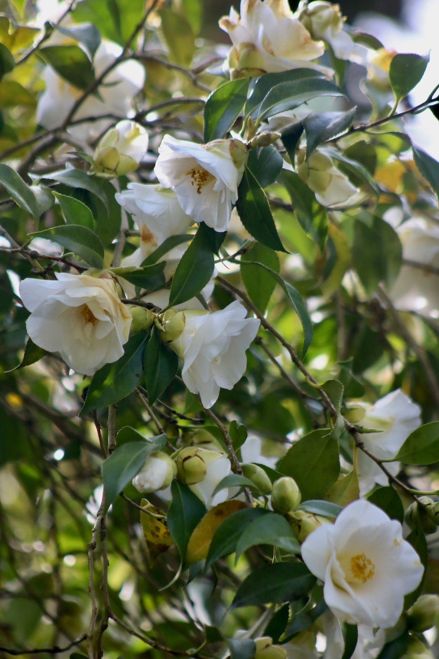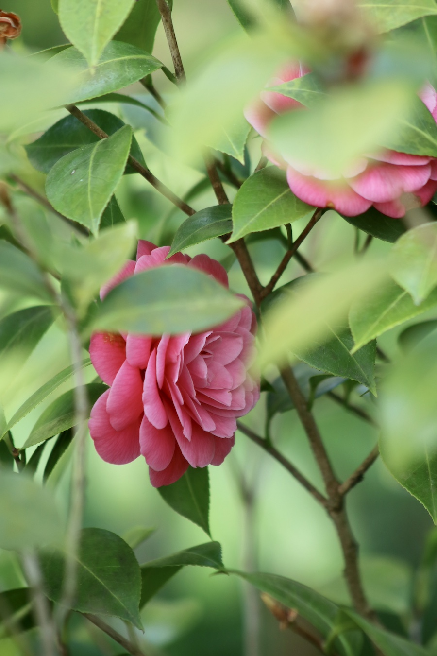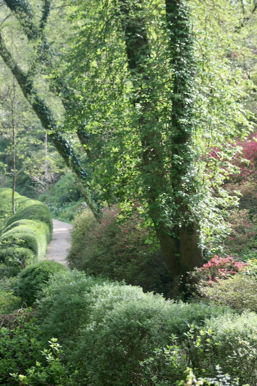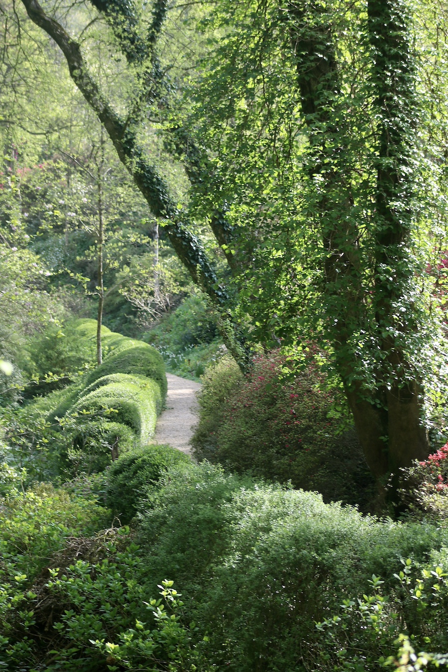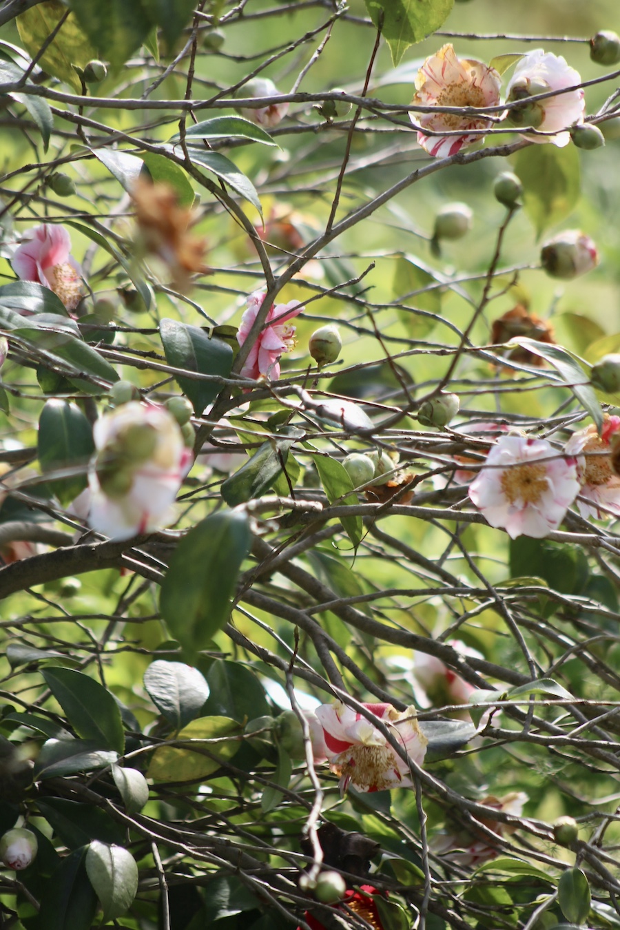 Und dann geht es schon hinunter zur nächsten, tiefer gelegenen Ebene: Vorbei an großartig blühenden Magnolienbäumen und Rhododendren – von denen es auf dem Gelände hunderte gibt –, an zarten Kamelien in unglaublichen Farben, entlang eines gewundenen Wegs, umwuchert von Pflanzen, die ich teilweise gar nicht kenne. Die Lichtstimmung, der Duft, die Stille, nur von Vogelzwitschern unterbrochen wird. Ich lasse mich etwas zurückfallen, zücke die Kamera. Eigentlich sollte man die Kamera wegstecken und das ganze einfach so auf sich wirken lassen. Sollte…