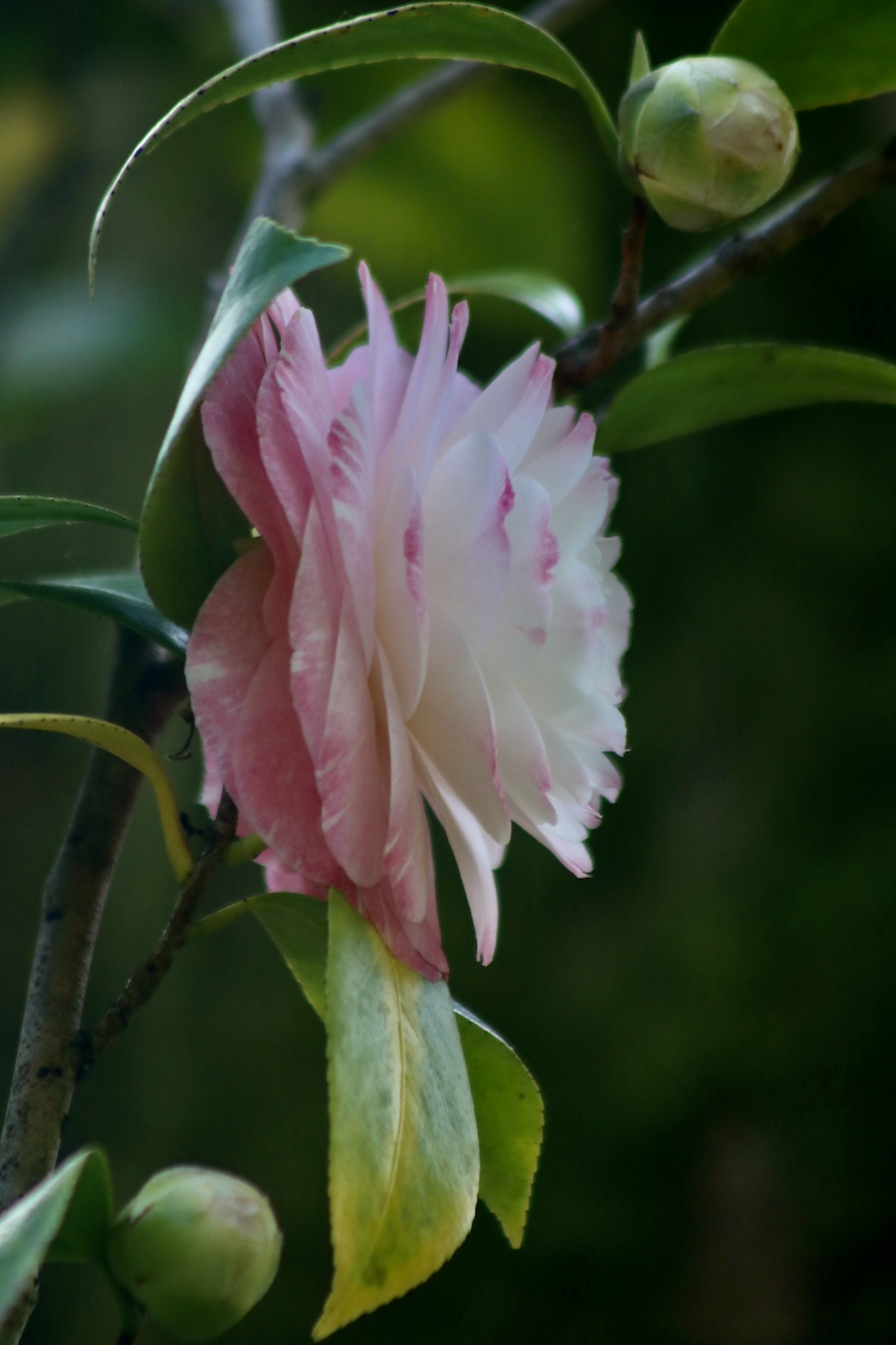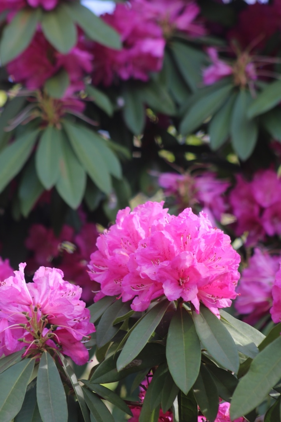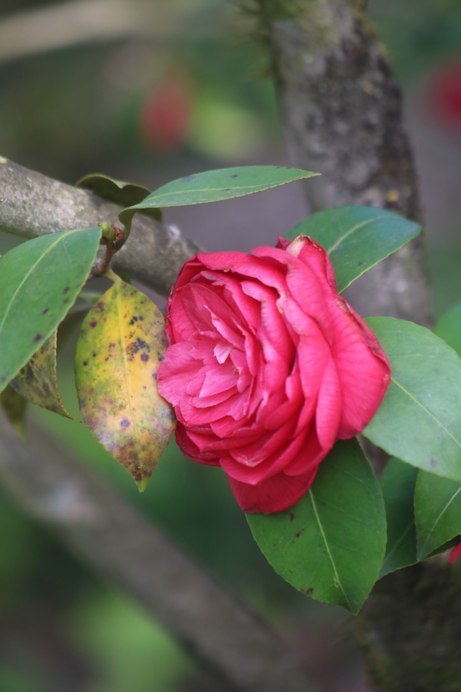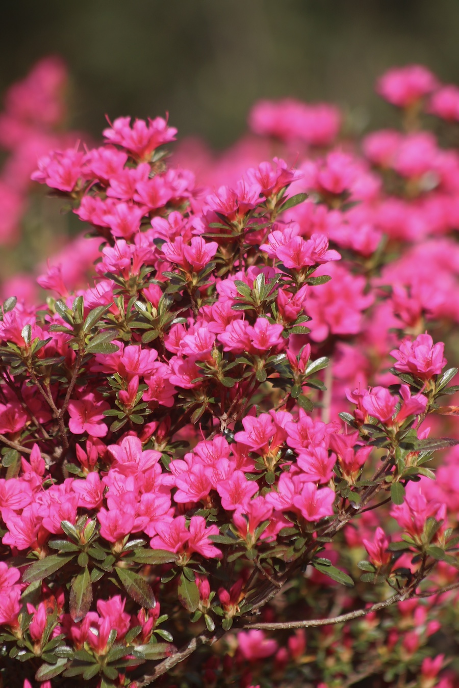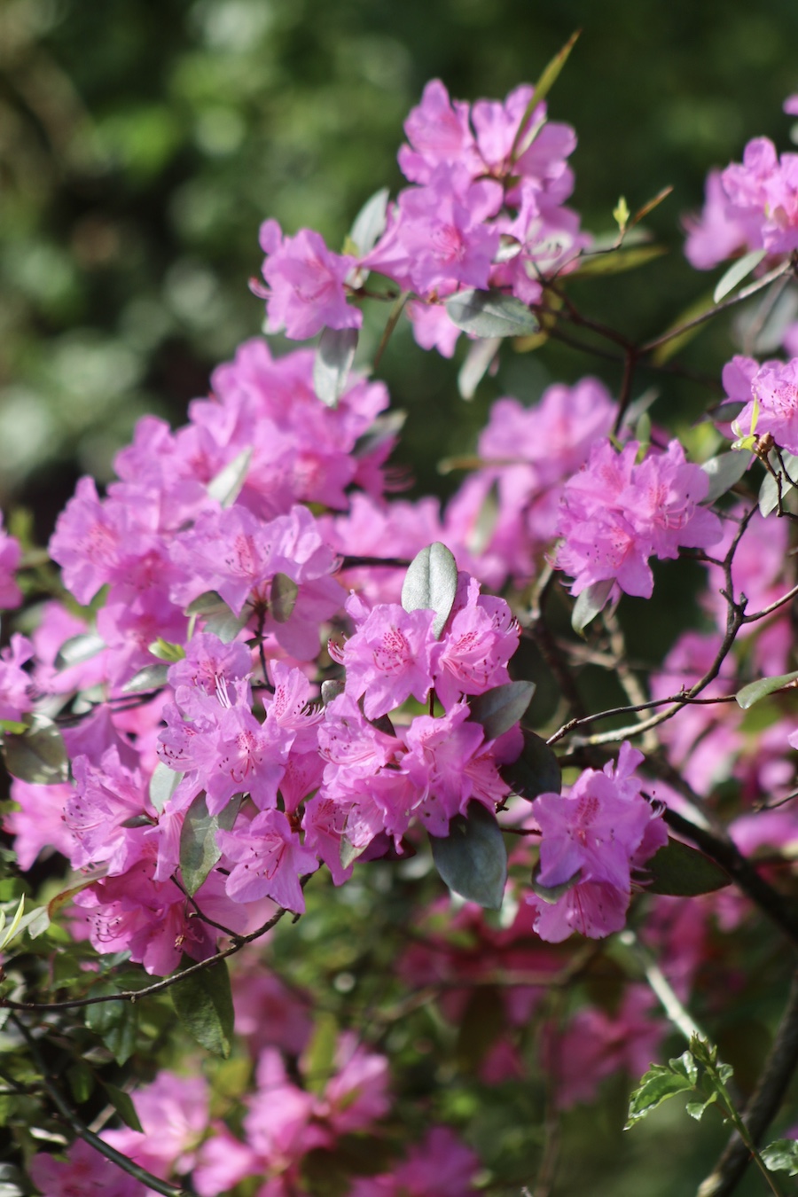 Und dann geht es schon hinunter zur nächsten, tiefer gelegenen Ebene: Vorbei an großartig blühenden Magnolienbäumen und Rhododendren – von denen es auf dem Gelände hunderte gibt –, an zarten Kamelien in unglaublichen Farben, entlang eines gewundenen Wegs, umwuchert von Pflanzen, die ich teilweise gar nicht kenne. Die Lichtstimmung, der Duft, die Stille, nur von Vogelzwitschern unterbrochen wird. Ich lasse mich etwas zurückfallen, zücke die Kamera. Eigentlich sollte man die Kamera wegstecken und das ganze einfach so auf sich wirken lassen. Sollte…