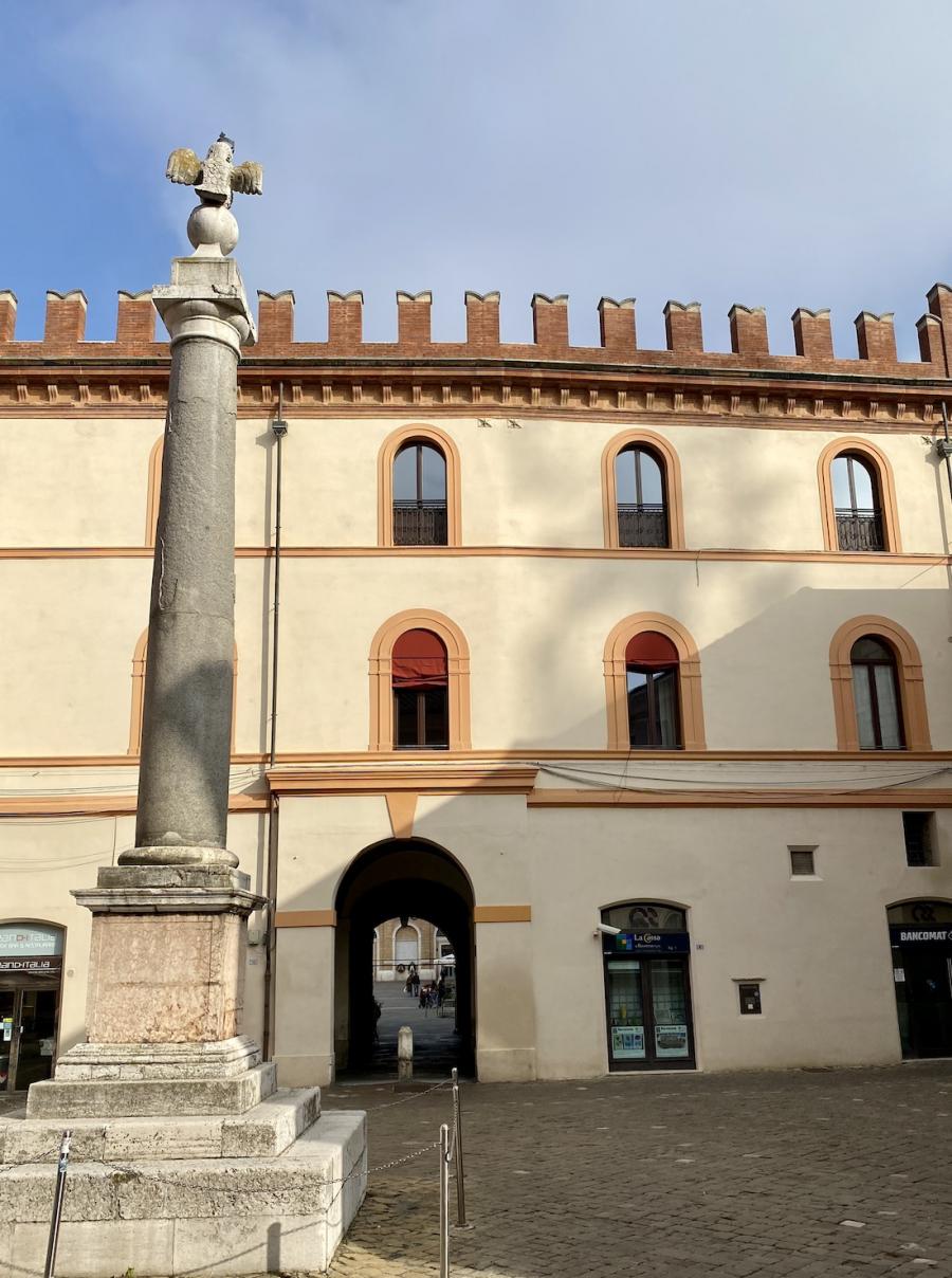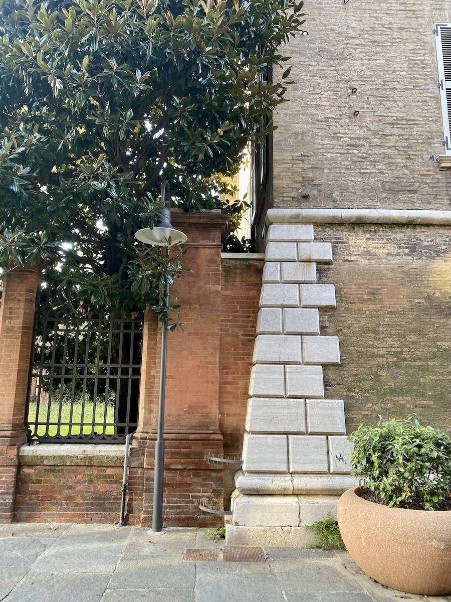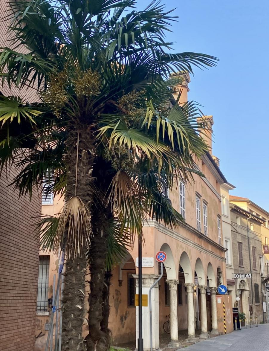 Klingt alles ziemlich schwer und bedeutsam, aber wenn man heute durch Ravenna geht, präsentiert sich die Stadt, abseits ihres historischen Erbes, sehr lebendig und lebensfroh. Auch wenn der graue Himmel die Stimmung in der Stadt an diesem Novembersonntag noch ein wenig zu drücken scheint, schon wenige Stunden später kommt die Sonne heraus und lässt die Altstadt – mit ihren pastelligen und auch immer wieder in kräftigeren Rot-Tönen gehaltenen Fassaden – gleich viel lebenslustiger herüberkommen. Zumeist kommen Reisende ja aus einem ganz speziellen Grund – wegen der prächtigen und so großartig erhaltenen frühchristlichen und byzantinischen Mosaiken – nach Ravenna. Damit allein wird man der Stadt aber so gar nicht gerecht, wie zumindest ich finde. Denn die kompakte und gut erhaltene Altstadt ist durchaus charmant und liebenswert und es lohnt sich abseits der üblichen Mosaiken-Stopps auch ein bisschen durch die Altstadtgassen zu schlendern und einfach mal die Stimmung dieser Stadt, die spannenderweise (zumindest bei unserem Besuch im November) so gar nicht touristisch herüberkommt, in sich aufzunehmen. Prächtige Palazzi, mächtige Tore, schöne Türen, bunte Fassaden, hübsche, belebte Plätze mit gut besuchten Caffès – das alles macht Ravennas angenehme Atmosphäre aus und Lust sich hier einfach ein bisschen treiben zu lassen.