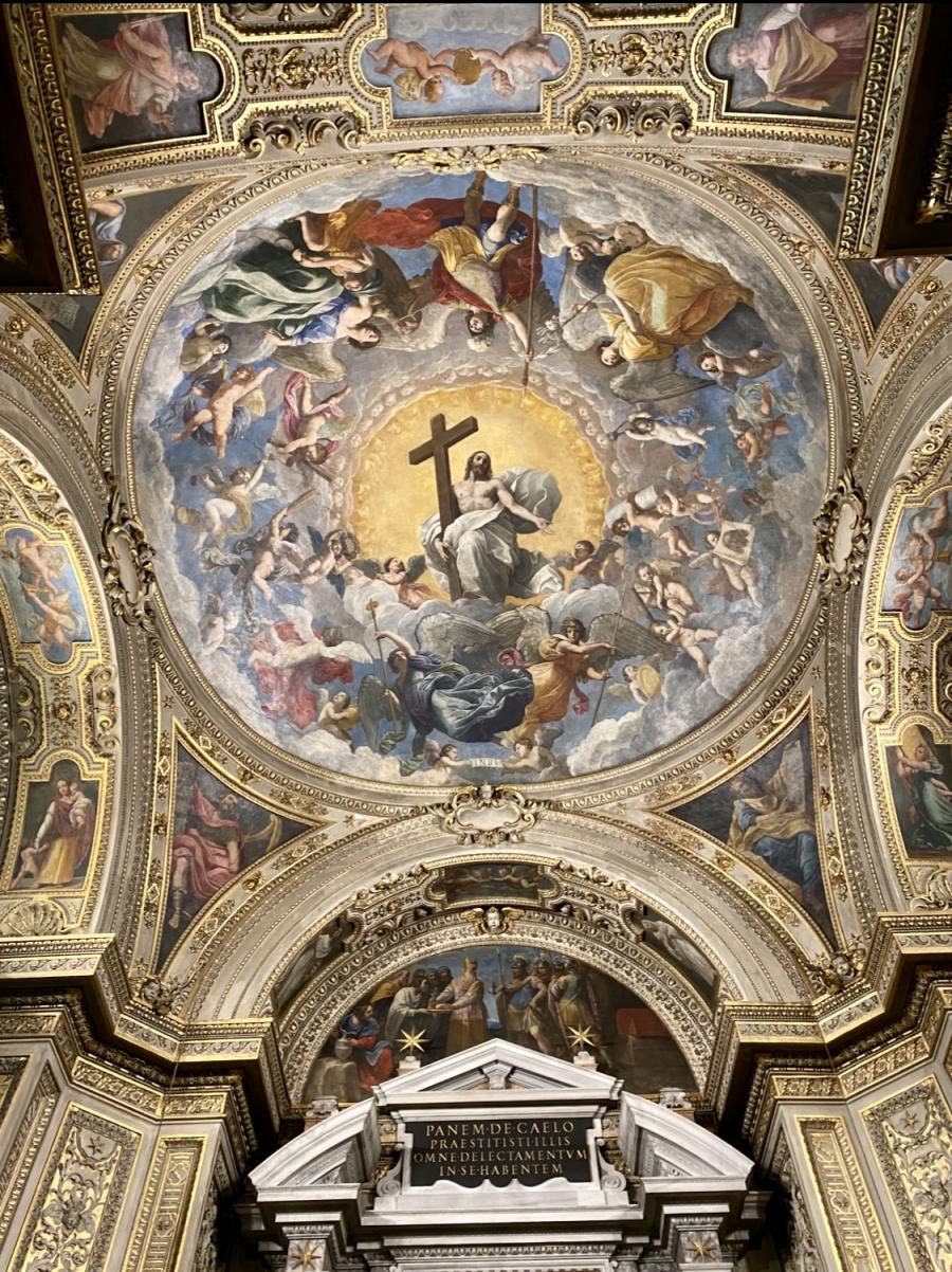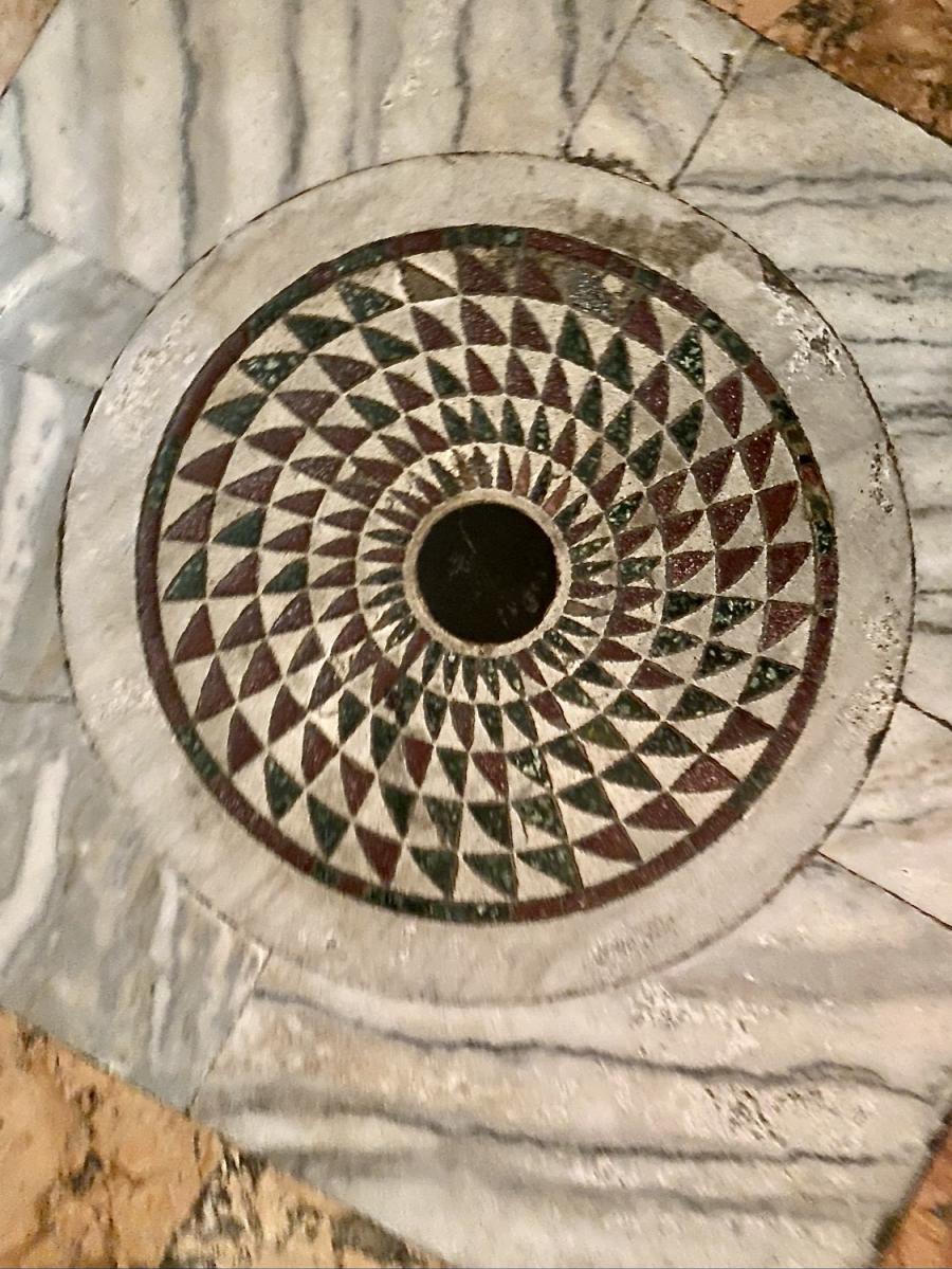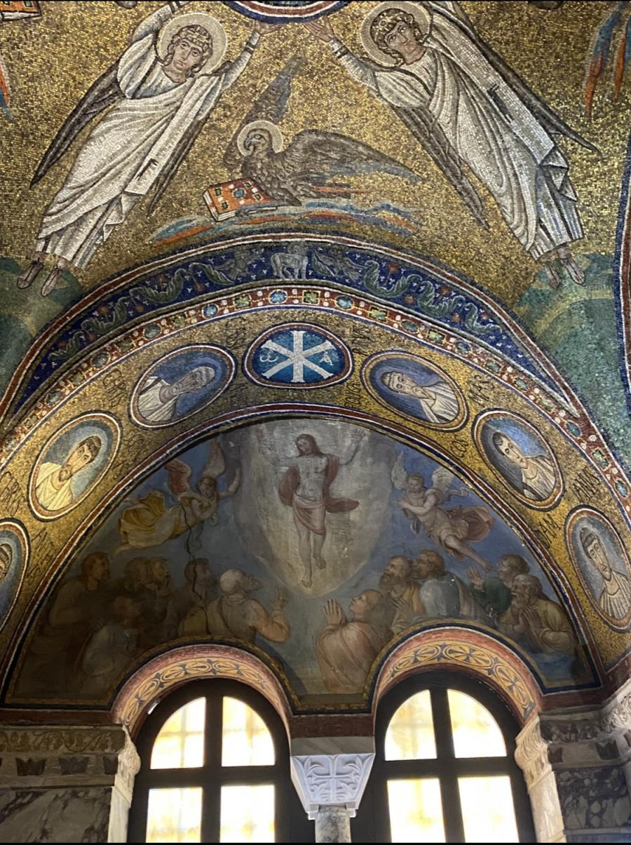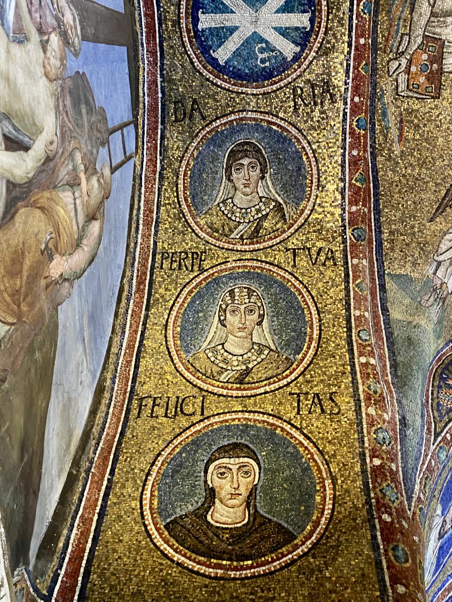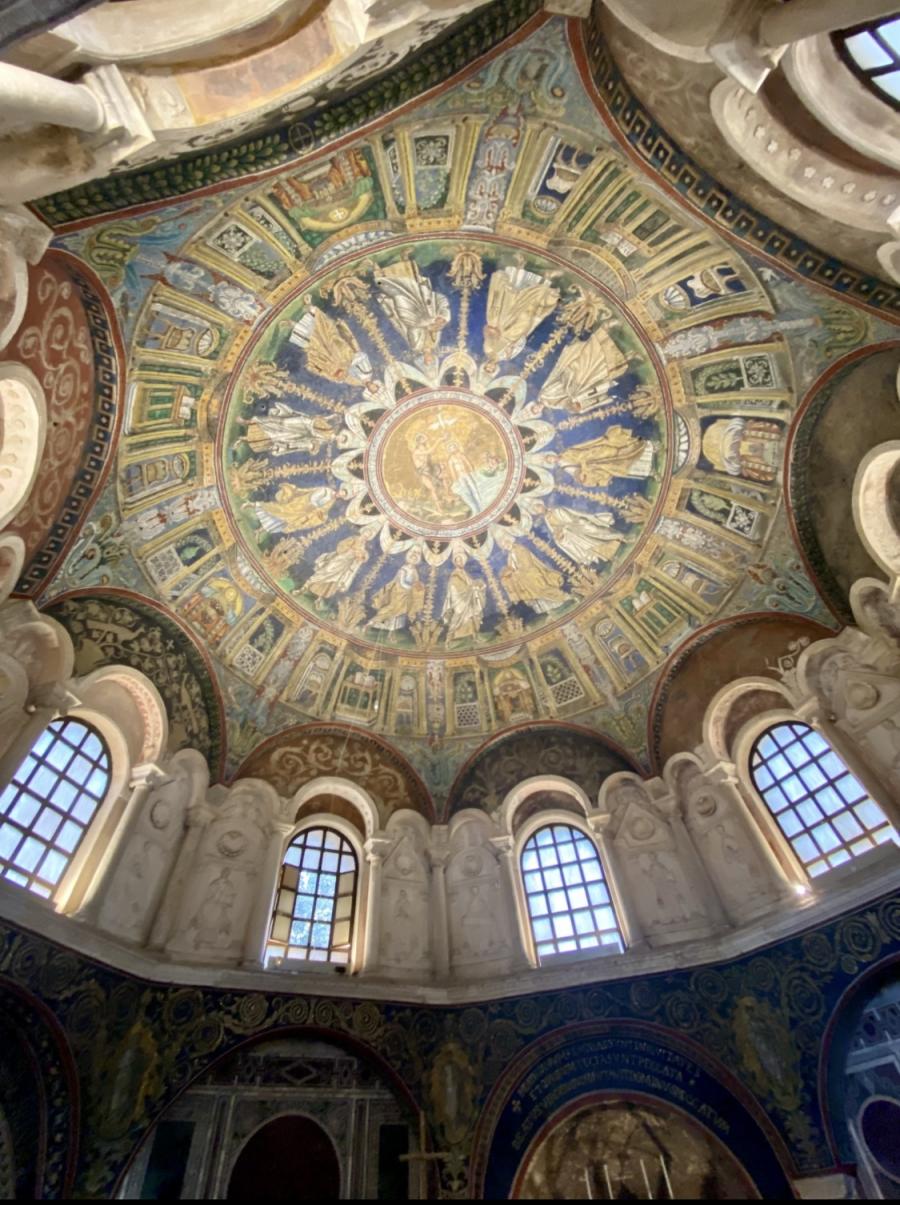 Und dann heißt es: Kopf in den Nacken! In der mit Mosaiken gestalteten Kuppel ist ein großes Medaillon mit der Taufe Christi zu sehen: Jesus steht im Fluss Jordan, neben ihm Johannes der Täufer, der ein Kreuz hält und mit der anderen Hand Wasser über Jesus Kopf schüttet. Rund um das Medaillon dann zwei darum herum verlaufende Friese, im inneren Fries sieht man die zwölf Apostel. Es gibt hier noch viel mehr Beeindruckendes zu sehen und mein Tipp ist, einen guten Kunst-Reiseführer dabei zu haben, um sich vorher schon ein wenig einzulesen – denn, wie gesagt, drinnen muss es dann aufgrund der recht knapp bemessenen Time Slots schnell gehen.