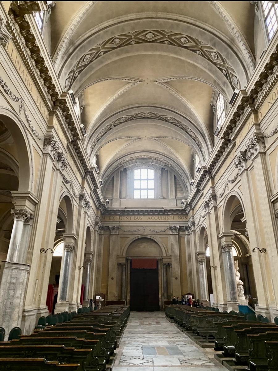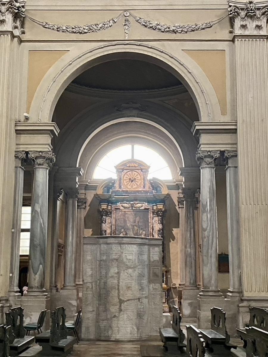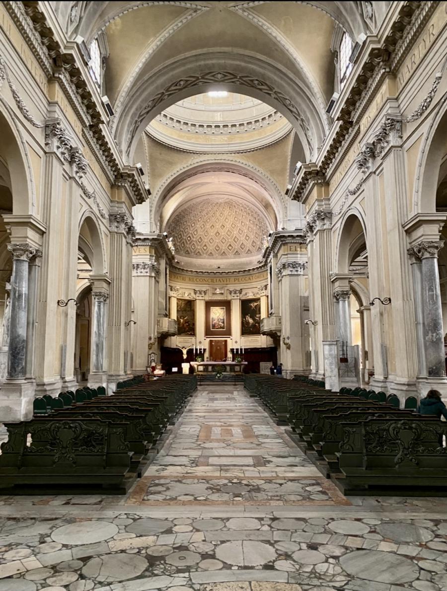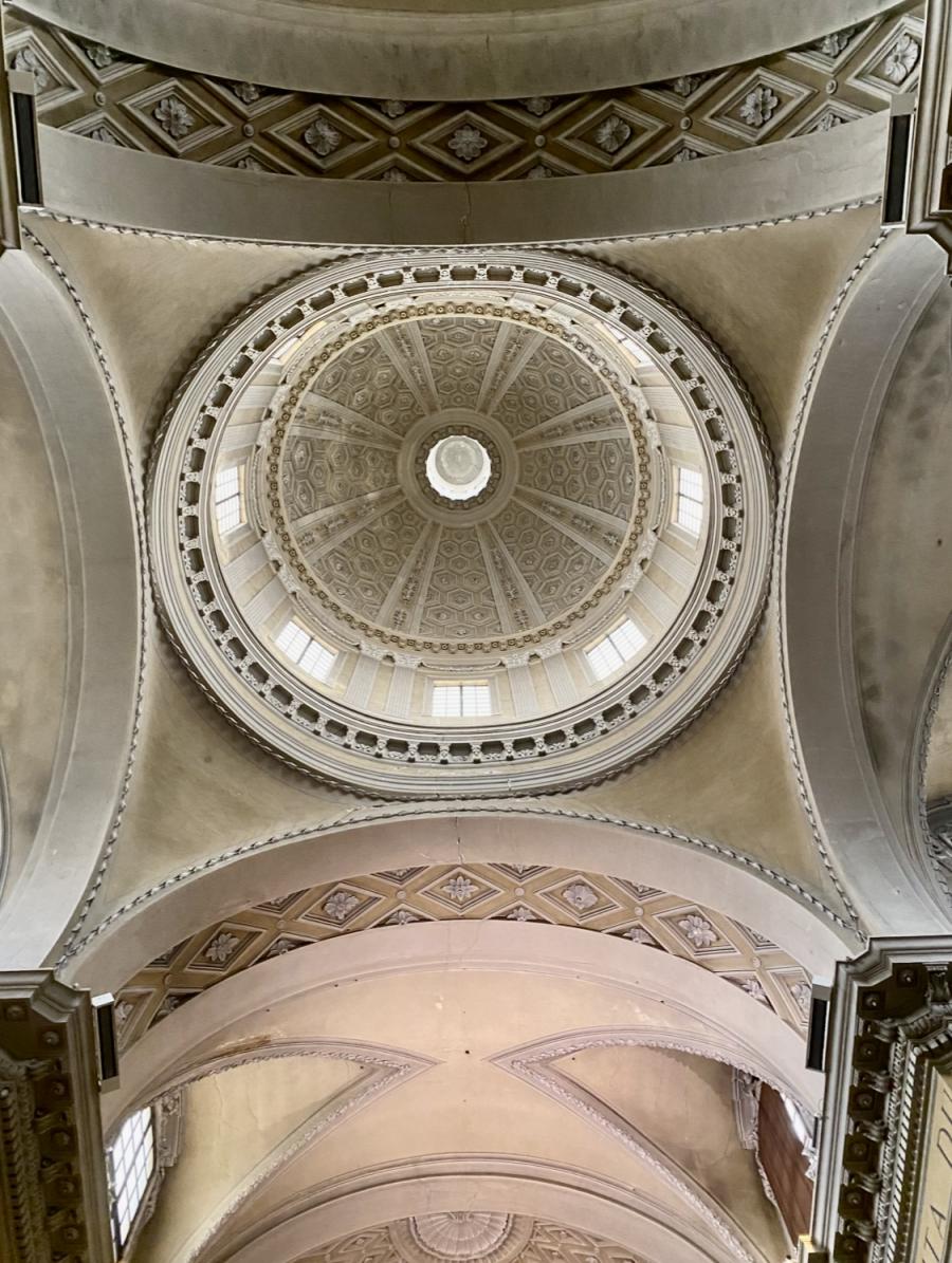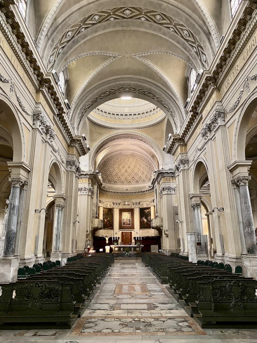 So unspektakulär der Dom von außen vielleicht wirken mag, innen überrascht er dann doch. Zum Beispiel mit der schönen klassizistischen Vierungskuppel, die an ihrer höchsten Stelle eine Höhe von fast 48 Metern erreicht. Auch der Hochaltar, 1760 erbaut, überzeugt mit seinen schönen, kostbaren Steinen wie z. B. antikem grünem Porphyr, Marmor aus Carrara oder orientalischem schwarzem Marmor. Darin befinden sich die Reliquien der ersten neun Bischöfe von Ravenna. Einst gehörte auch ein silbernes Ziborium zu diesem Altar, das aber Anfang des 16. Jahrhunderts geraubt wurde.