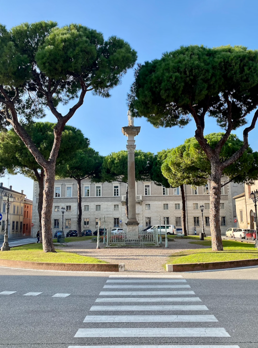 Ravenna (rund 156.000 Einwohner:innen) ist die Hauptstadt der Provinz Ravenna in der Region Emilia-Romagna und lag ursprünglich an der Adria. Durch Verlandung hat sich das jedoch geändert und der Stadtkern liegt heute rund neun Kilometer von der Küste entfernt. 74 Jahre lang, von 402 bis 476 war Ravenna die Hauptresidenz der weströmischen Kaiser, die Stadt steht aber für noch mehr große Namen, wie z. B. Odoaker oder Theoderich der Große, die hier später residierten. Der byzantinische Einfluss, den man noch heute spürt und vor allem an den zahlreichen Mosaiken der Stadt ablesen kann, gründet darauf, dass Ravenna vom Ende des 6. Jahrhunderts bis zu seiner Eroberung durch die Langobarden im Jahr 751 Hauptstadt des oströmischen bzw. byzantinischen Exarchats von Ravenna und damit ein wichtiger Eckpfeiler der byzantinischen Macht in Italien war.