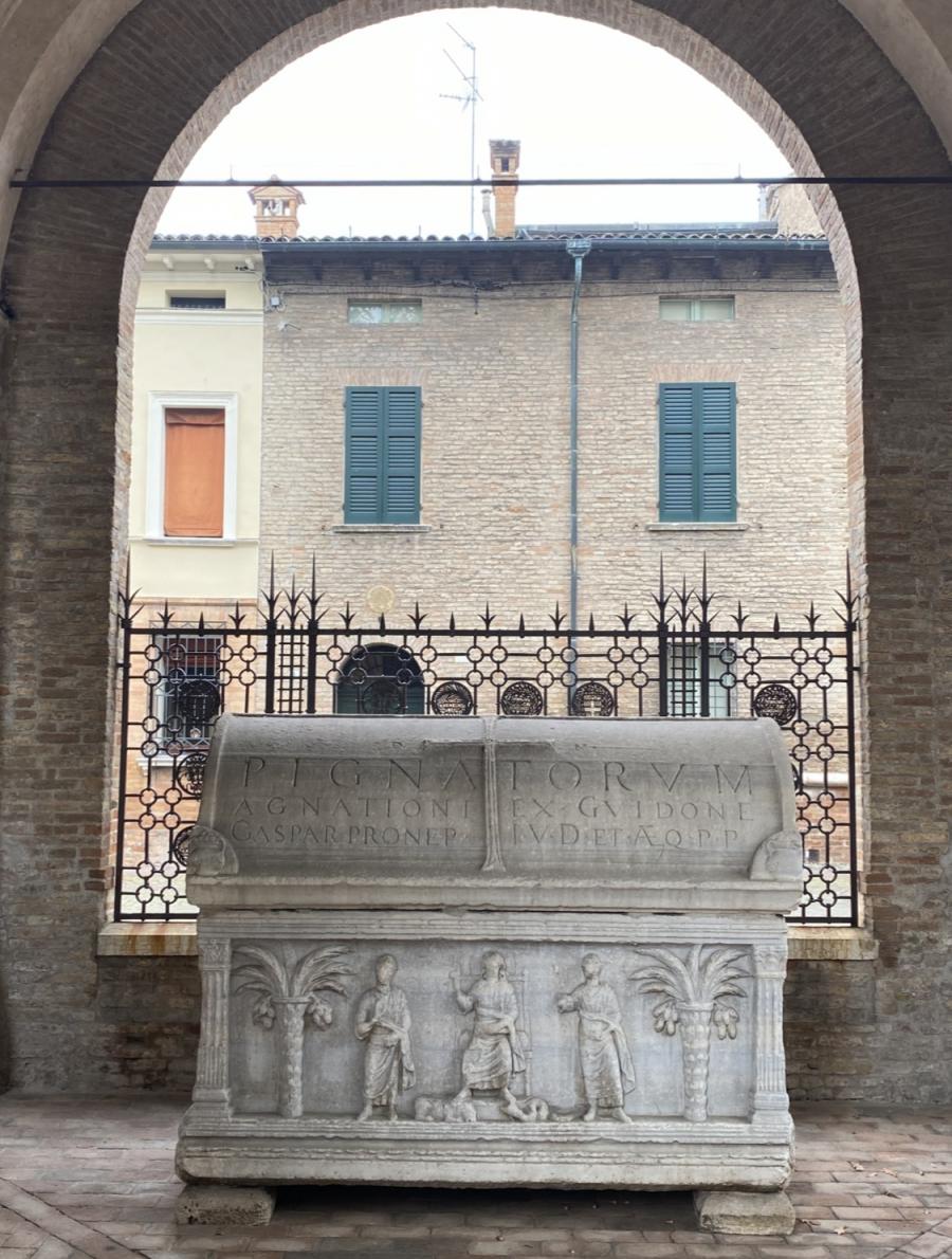 Es bietet sich an, jetzt auch noch einen Abstecher ins Museo Arcivescovile (Erzbischöfliches Museum) zu machen, denn es befindet sich im Erzbischöflichen Palais gleich neben Dom und Battisterio Neoniano. Gegründet in der ersten Hälfte des 18. Jahrhunderts, wurde es im Zuge der Jahrhunderte immer wieder umgebaut und um weitere Ausstellungsobjekte erweitert. Heute findet man hier ein Lapidarium (mit Inschriften, Mosaikfragmenten und Steindenkmälern aus dem Dom von Ravenna), diverse Objekte aus Kirchen der Diözese Ravenna sowie Ausgrabungsfunde aus der 2. Hälfte des 20. Jahrhunderts. Im 2. Stockwerk, das 2010 eröffnet wurde, findet man eine kleine Pinakothek mit schönen Gemälden und darüber hinaus eine Sammlung liturgischer Geräte und Gewänder.