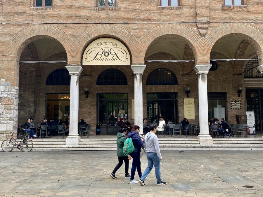Zunächst aber gehen wir es relaxed an, denn ein Frühstück ist sich in Bologna nicht mehr ausgegangen, wir wollten einen frühen Zug erwischen, um diesen Sonntag in Ravenna möglichst gut auszunutzen. Also peilen wir als erstes gleich mal das Caffè Pasticceria Palumbo unter den Arkaden an der Piazza S. Francesco (Nr. 3) an. Und dieses ist genau nach meinem Geschmack: eine großartige Auswahl an süßen Spezialitäten, guter Kaffee und soweit mein Ohr das erfassen kann, ist das Caffè fest in italienischer Hand. Perfetto! Das ist genau der richtige Start in einen Tag mit ganz viel Kunstgenuss…