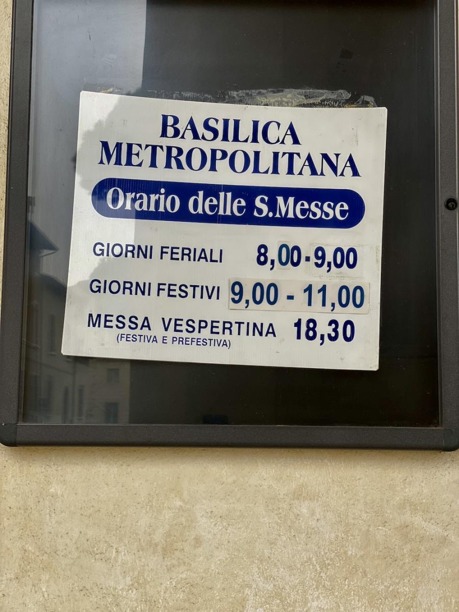 Und weil wir schon mal da sind, auf der Piazza S. Francesco nämlich, schauen wir auch gleich mal rein in die Basilika San Francesco, eine dreischiffige Säulenbasilika, die bis heute vom Minoriten-Orden betreut wird. Mit dem Bau der Kirche war ca. Mitte des 5. Jahrhunderts begonnen worden, in den folgenden Jahrhunderten wurde der Sakralbau immer wieder umgebaut und erweitert.