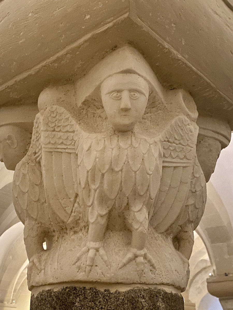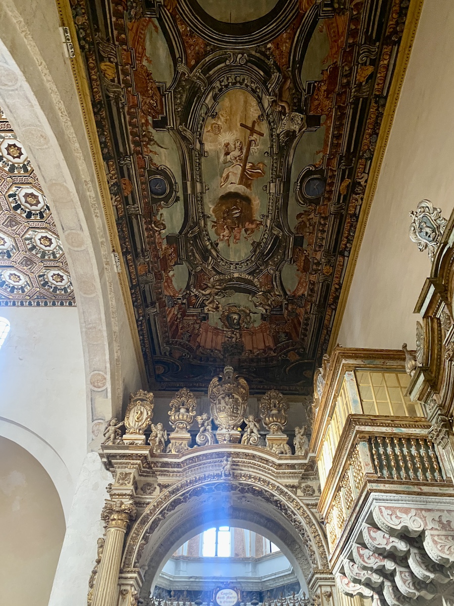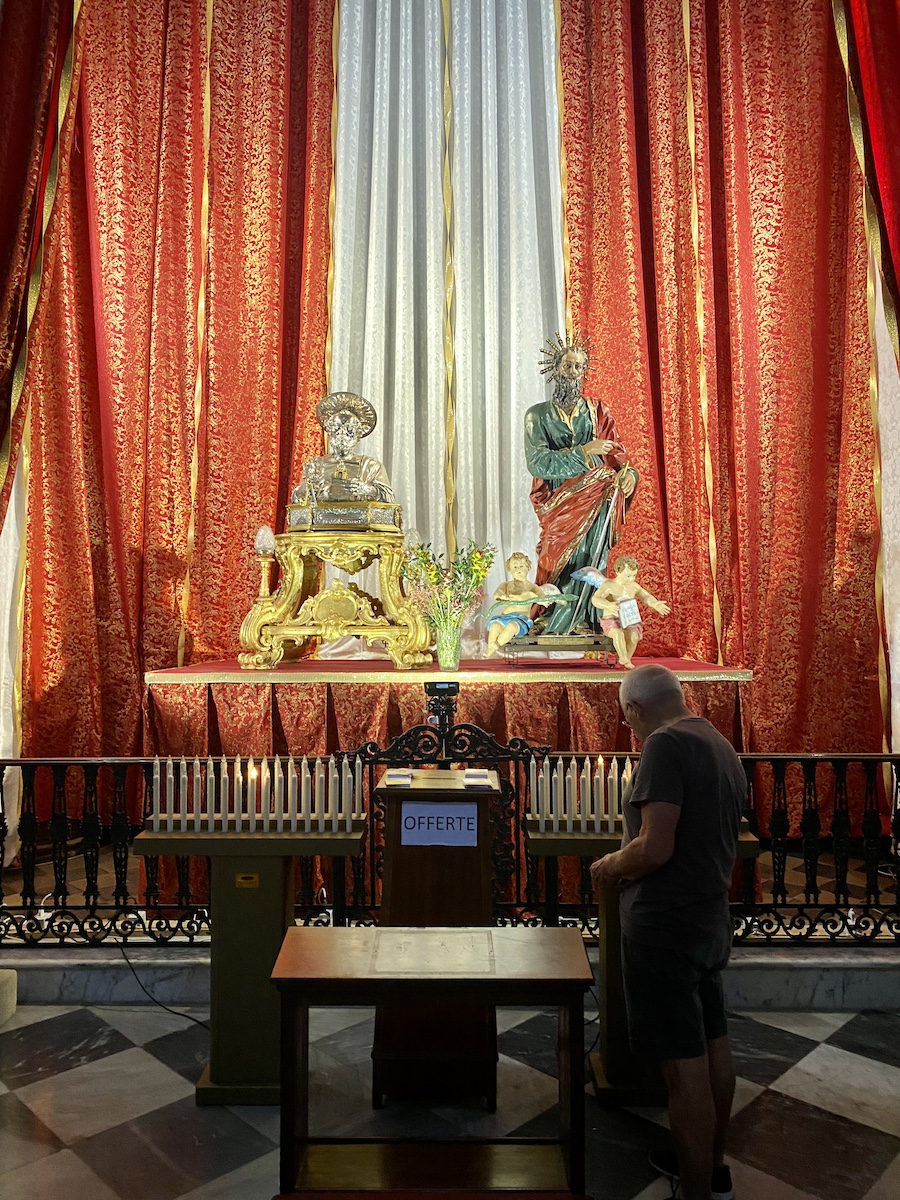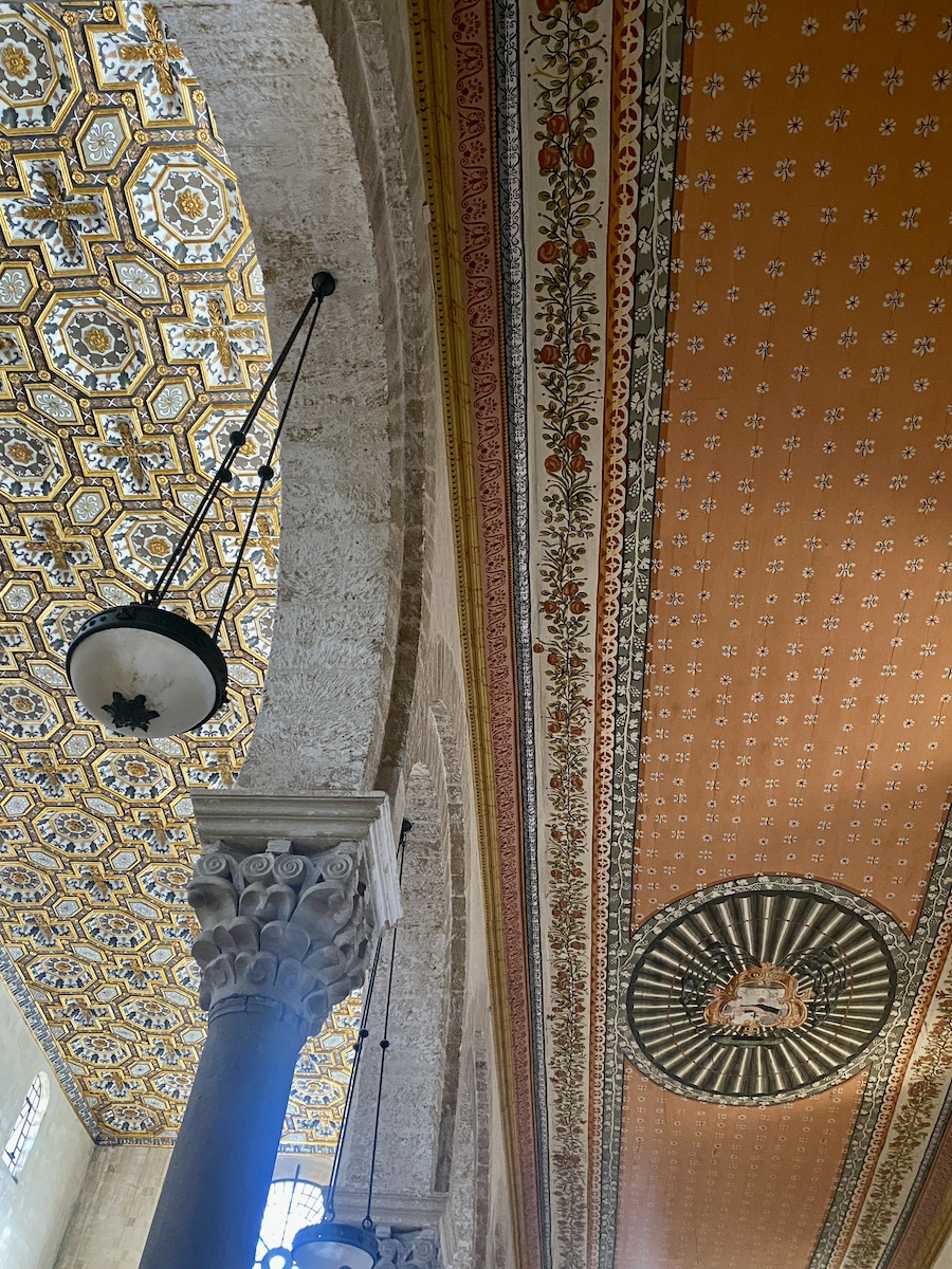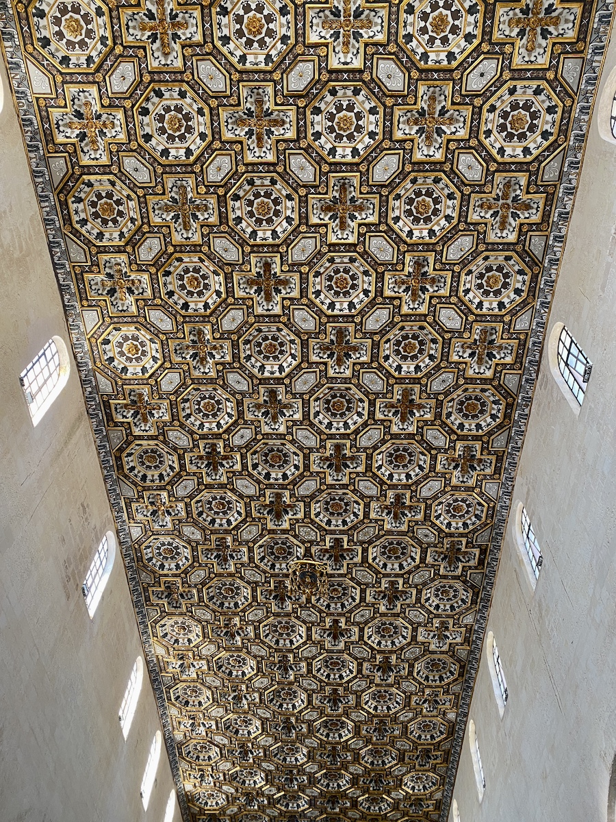 Beim letzten Besuch war die Krypta der Kathedrale Santa Annunziata geflutet von Besucher:innen, also versuchen wir es nun ein weiteres Mal. Und siehe da, nun gehört sie fast uns alleine. Dieses Mal nehme ich erst so richtig diesen Dschungel von insgesamt 42 Säulen wahr, allesamt höchst unterschiedlich, glatt oder auch mit schönen Ornamenten versehen, und mit korinthischen, dorischen oder romanischen Kapitellen ausgestattet. Von Säule zu Säule wandern wir durch diese beeindruckende Hallenkrypta, die eine erstaunlich niedrige Decke hat und die bereits im 11. Jahrhundert fertiggestellt worden war. Dass sie auf den Resten eines antiken Tempels errichtet wurde, das erahnt man hier nicht.