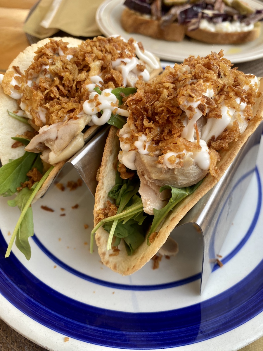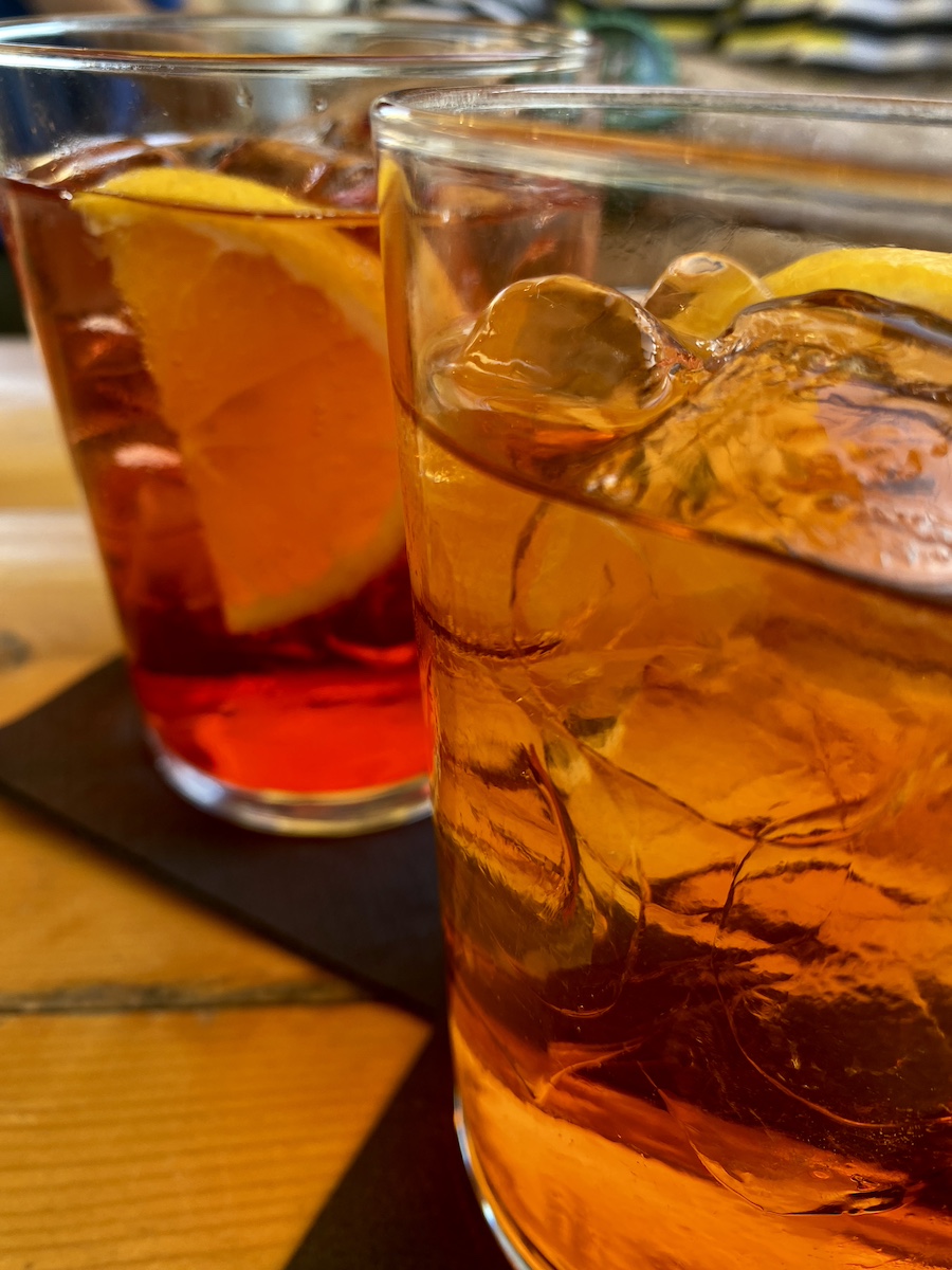 Nach diesem schnellen Kultur-Rundgang, der einem langen Badetag (am Lido di Tropea) folgte, haben wir uns nun einen Aperitivo und eine Kleinigkeit zum Essen verdient. Fündig werden wir in der Bar Castello (Piazza Castello, 8): Campari und Aperol Sprizz leuchten um die Wette im Abendlicht und meine Tacos mit Huhn sind köstlich – ottimo!