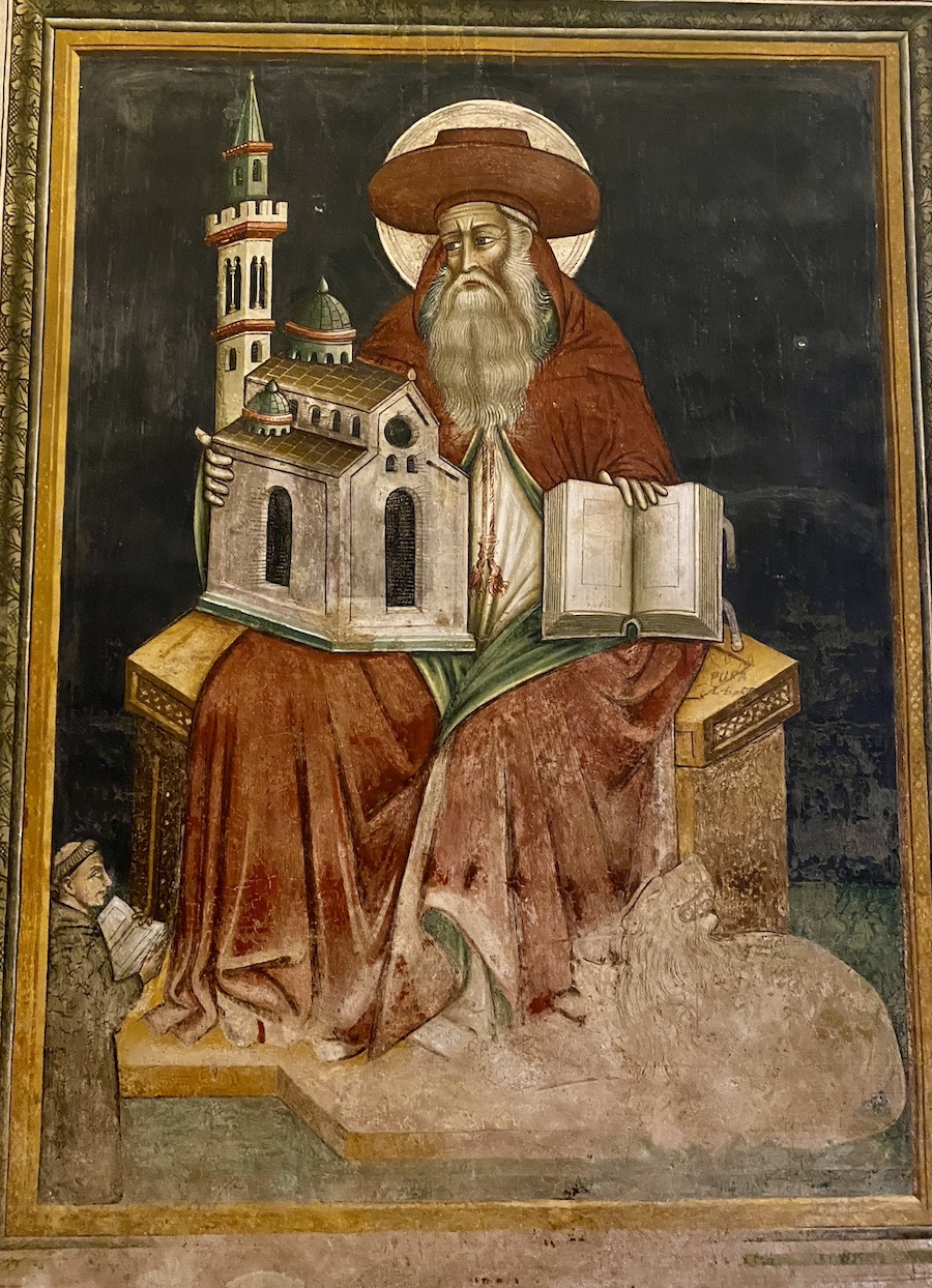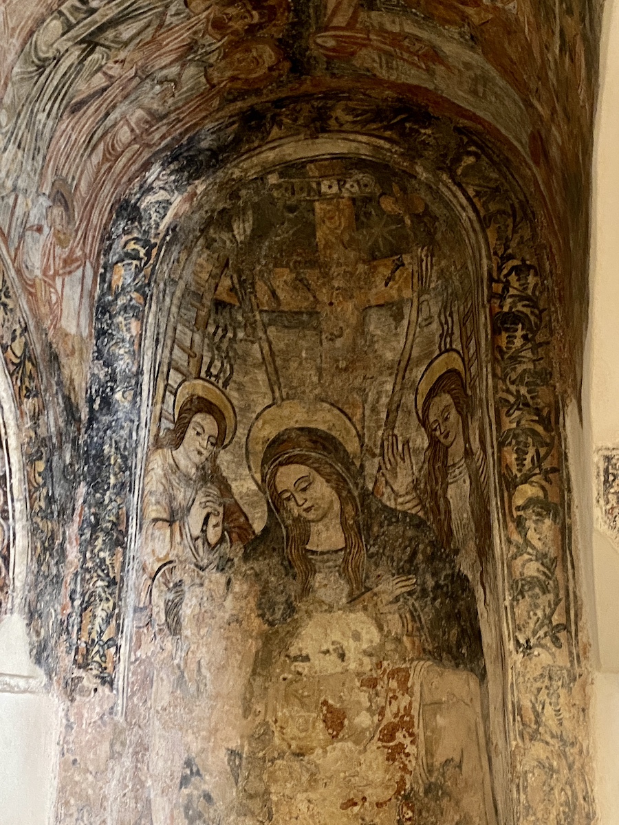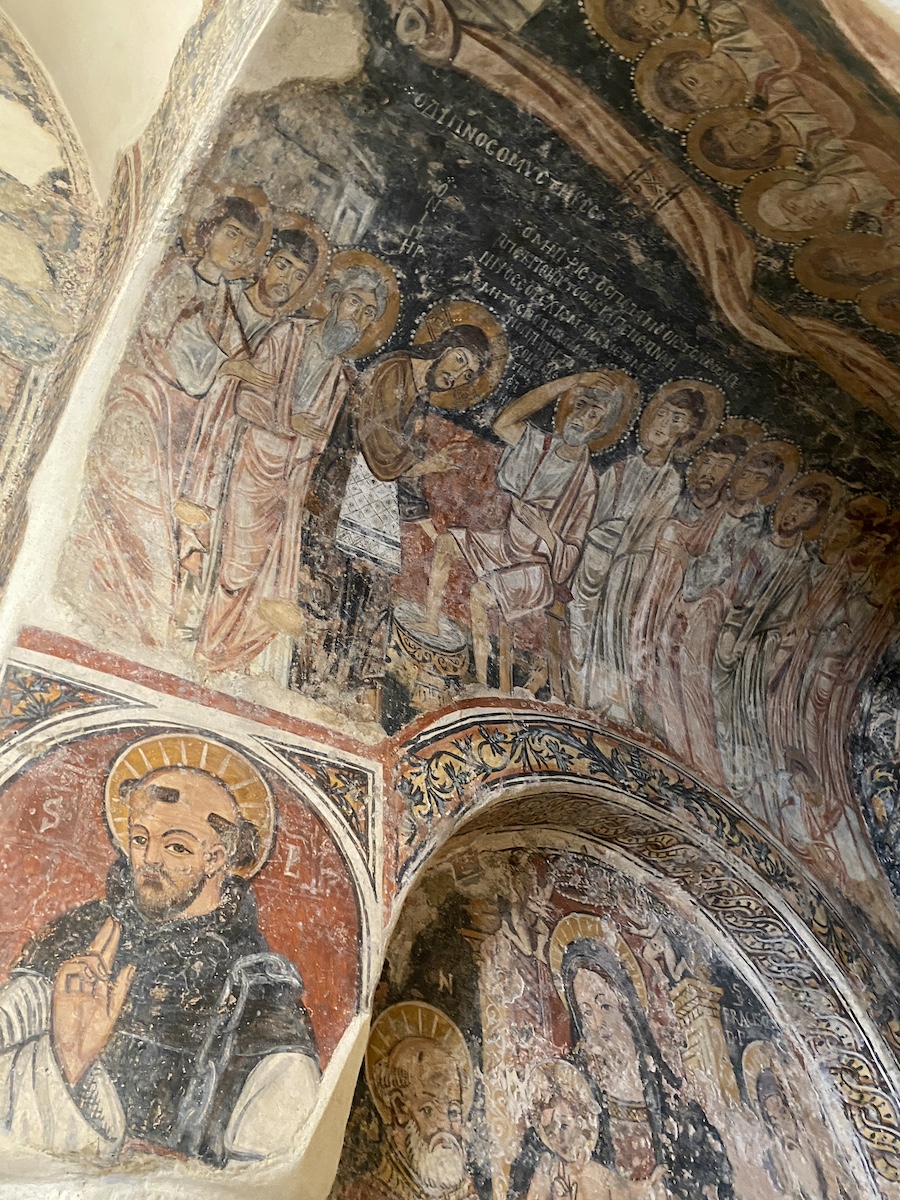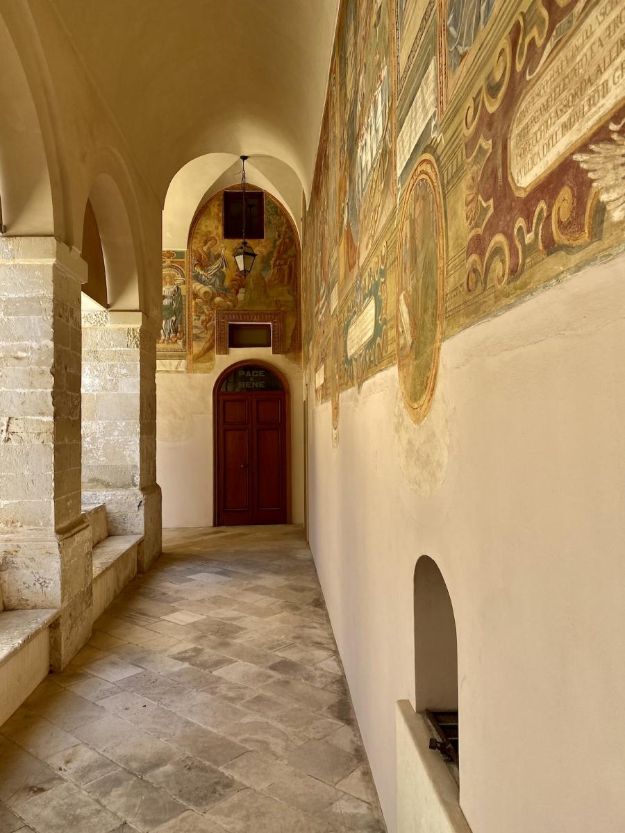 Im ehemaligen Refektorium wurde ein kleines Museum eingerichtet, uns aber zieht es noch in den schönen, rechteckigen Kreuzgang des angeschlossenen Katharinenklosters, wo Fresken aus dem 17. Jahrhundert Episoden aus dem Leben des Franz von Assisi erzählen. Und wo es sich im Schatten des Kreuzgangs in der Mittagshitze recht gut aushalten lässt...