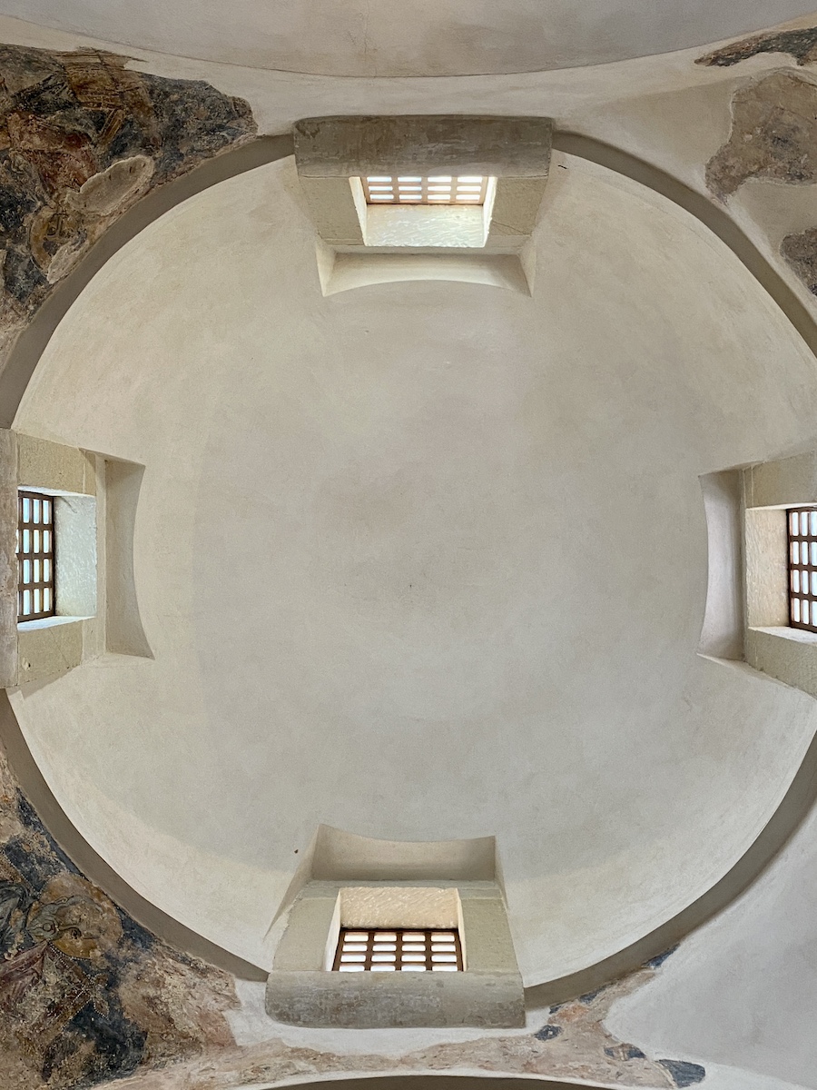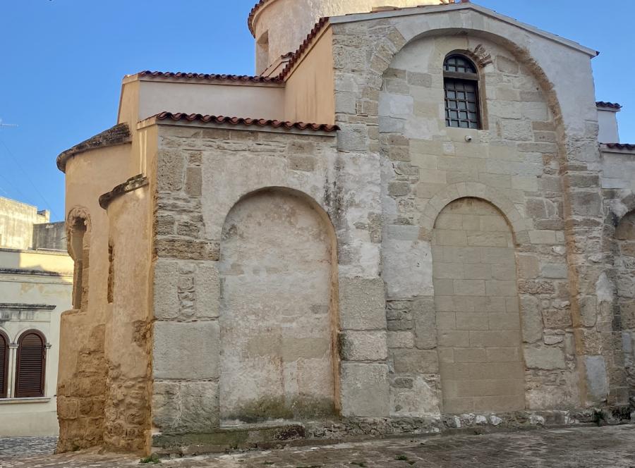 Weiter geht es ins Stadtzentrum hinein, denn wir wollen nun die Chiesa di San Pietro sehen, die einzige byzantinische Kreuzkuppelkirche Apuliens. Fast auf die letzte Minute schaffen wir es noch ins Kircheninnere zu kommen: Die freundliche Dame an der Kassa lässt uns noch ein und sogar ausgiebig Zeit das Innere zu bestaunen, obwohl sie eigentlich schon schließen müsste. Und so bleibt uns genug Zeit dieses kleine Juwel aus der 2. Hälfte des 10. Jahrhunderts, das vermutlich einst die Hauptkirche Otrantos war, zu erkunden, was aufgrund der vielen gut erhaltenen Fresken (aus dem 11.- 14. Jahrhundert) im byzantinischen Stil mehr als lohnenswert ist. Zu sehen sind hier z.B. die "Fußwaschung" und "Das letzte Abendmahl". Otranto selbst wird aufgrund seiner geografischen Lage ja oft als "Tor zum Orient" bezeichnet und ja, das wird einem hier, in dieser kleinen Kirche, noch einmal mehr bewusst. Mein Fazit: Von den Ausmaßen her eine kleine Kirche, aber ganz großes Fresken-Kino!