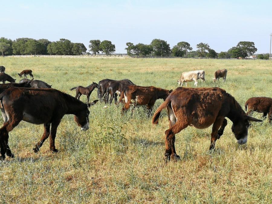 Nicht zu übersehen sind auch die für das Itria-Tal typischen Trockenmauern, die aus flachen Kalkplatten errichtet wurden, und sich wie steinerne Adern durch die ganze Region ziehen. Mohnblumen und Gräser wuchern großzügig entlang dieser Mauern, gelbe Getreidefelder leuchten dazwischen. Und dann die Trulli: Die kleinen weiß getünchten Häuser mit ihren spitzen Dächern komplettieren den Reiz dieses landschaftlich schönen Tals. Unterwegs schließen wir neue Freundschaften: Auf einer Weide grasen friedlich Kühe, Pferde und Esel nebeneinander und den Benjamin unter den Eseln würden wir am liebsten ins Auto packen und mitnehmen. Denn es ist Liebe.