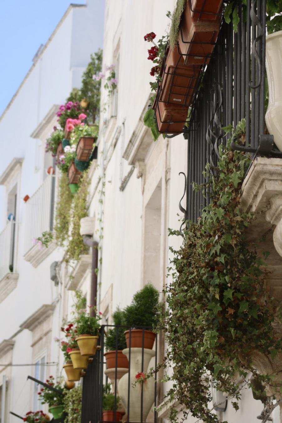 Nach all dem üppigen Barock im Centro Storico suchen wir noch den Gegensatz und finden diesen im Stadtviertel Cordonello, im Westen der Altstadt: Hier reiht sich ein weiß getünchtes Haus an das andere, mit üppigem Blumenschmuck und kunstvoll geschmiedeten gusseisernen Balkongittern, an denen oft „Pumi“ angebracht sind, eine Art Blütenknospe aus Keramik, die als wichtiger Glücksbringer gilt. In den unterschiedlichsten Formen und Farben kann man die Pumi da oben bewundern, aber egal wie ein Pumo im Detail gestaltet ist, alle Pumi sollen ihren Besitzern Glück, Wohlstand und – nach der antiken Tradition Apuliens – auch Fruchtbarkeit bringen. So werden diese gerüchteweise auch an den Seiten der Ehebetten junger Brautpaare angebracht. Für Wohlstand bin ich jedenfalls immer zu haben und so wanderten – sicher ist sicher – zwei kleine Pumi auch in mein Reisegepäck.