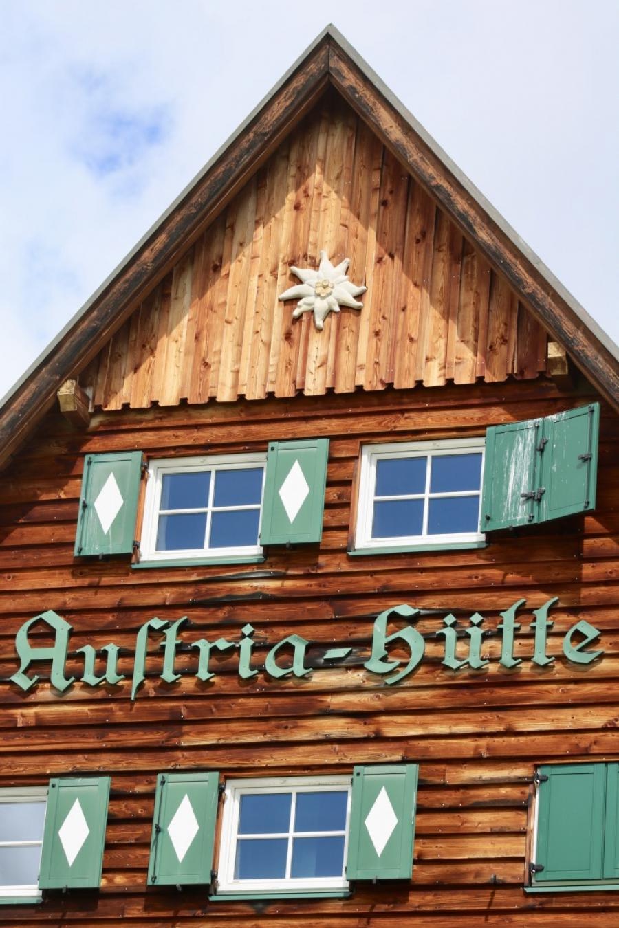 In meiner Kindheit war diese Wanderung unsere "Eingeh-Wanderung": Als 6-jährige bin ich mit meinem Vater zu Beginn unseres Urlaubs in der Ramsau immer regelrecht hinaufgestürmt zur Austriahütte. Vom "Stürmen" bin ich heute weit entfernt, denn von unserem Startpunkt, dem Gasthof Edelbrunn, geht es über den Roseggersteig gleich mal ziemlich steil bergauf, hier macht man schnell Höhenmeter. Daher wählen wir die umgekehrte Route und gehen über den breiten Forstweg zur Austriahütte; dieser ist zwar anfangs ein wenig langweilig, aber spätestens wenn man sich der Brand Alm nähert, wartet hier ein überwältigender Ausblick auf die Dachstein-Südwand und die gegenüberliegenden Schladminger Tauern auf einen. Kurz stehen bleiben, durchatmen, staunen. Sattgrüne Almwiesen, blauer Himmel, und dann stehen wir auch schon vor der idyllischen Brand Alm Hütte und widerstehen erfolgreich der Versuchung bereits hier einzukehren.